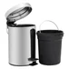 Pedal con sistema de apertura interior. Se acciona fácilmente con el pie para mayor comodidad e higiene. El receptáculo interior es de plástico y tiene una manilla de metal. Se extrae para eliminar su contenido o para limpiarlo adecuadamente. El mecanismo de pedal evita la contaminación cruzada en la cocina, durante la preparación de alimentos, ya que no tendrás que tocar la tapa para desechar cáscaras, envases u otros. El Set Papeleros de Metal con Pedal 12 Litros + 3 Litros Color Plateado y Negro de Home Collection evita que los desechos queden a la vista, resguardando la privacidad en el baño y manteniendo condiciones higiénicas.