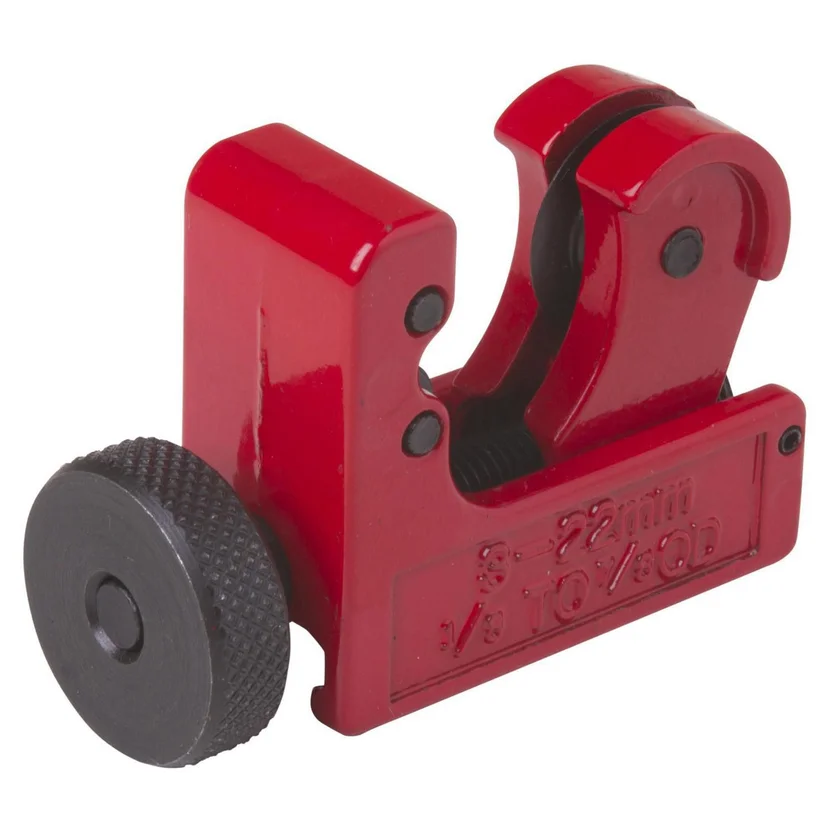 El Cortador de Tubos Mini de la marca Redline supone una ayuda importante en el campo de la construcción , sobre todo en gasfitería. Su estructura compacta tiene todo lo necesario para poder cortar cómoda y rápidamente cualquier tipo de cañería de cobre, siempre y cuando su diámetro sea como máximo de 22 mm. Para ello dispones de una cuchilla afilada que garantiza un corte limpio y perfecto.