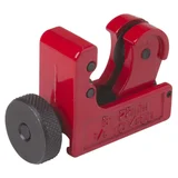 Características del Cortador de Tubos Mini Redline: su tamaño es de lo más reducido con un peso también muy bajo, para que puedas manejarlo fácilmente con una sola mano mientras con la otra mantienes firme aquello que quieras seccionar. Tiene un funcionamiento muy sencillo que consiste en colocar el tubo entre dos rodillos dispuestos en paralelo y una cuchilla . Para ajustarlo, debes atornillar lentamente la pieza manual exterior que es la que aproxima la hoja al tubo, ejerciendo la fuerza necesaria para el corte.
