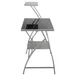 La Estación de Trabajo con Repisa Gris es un mueble que cumple con 2 funciones complementarias. Por un lado, ofrece un cómodo escritorio, mientras que por otro contempla un estante con 3 tablas donde podrás almacenar libros, documentos y adornos.