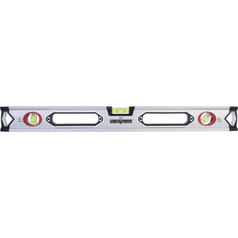 El Nivel de aluminio 24" gris marca Ubermann, es una herramienta de alta precisión para nivelar en horizontal y/o vertical, gracias a que cuenta con una estructura fabricada en aluminio, lo que además le proporciona una mayor resistencia. Esta particular característica que tienen los niveles de aluminio data de una precisión elevada de 0.5mm/m1, lo que los destaca de otros tipos de niveles de burbuja.