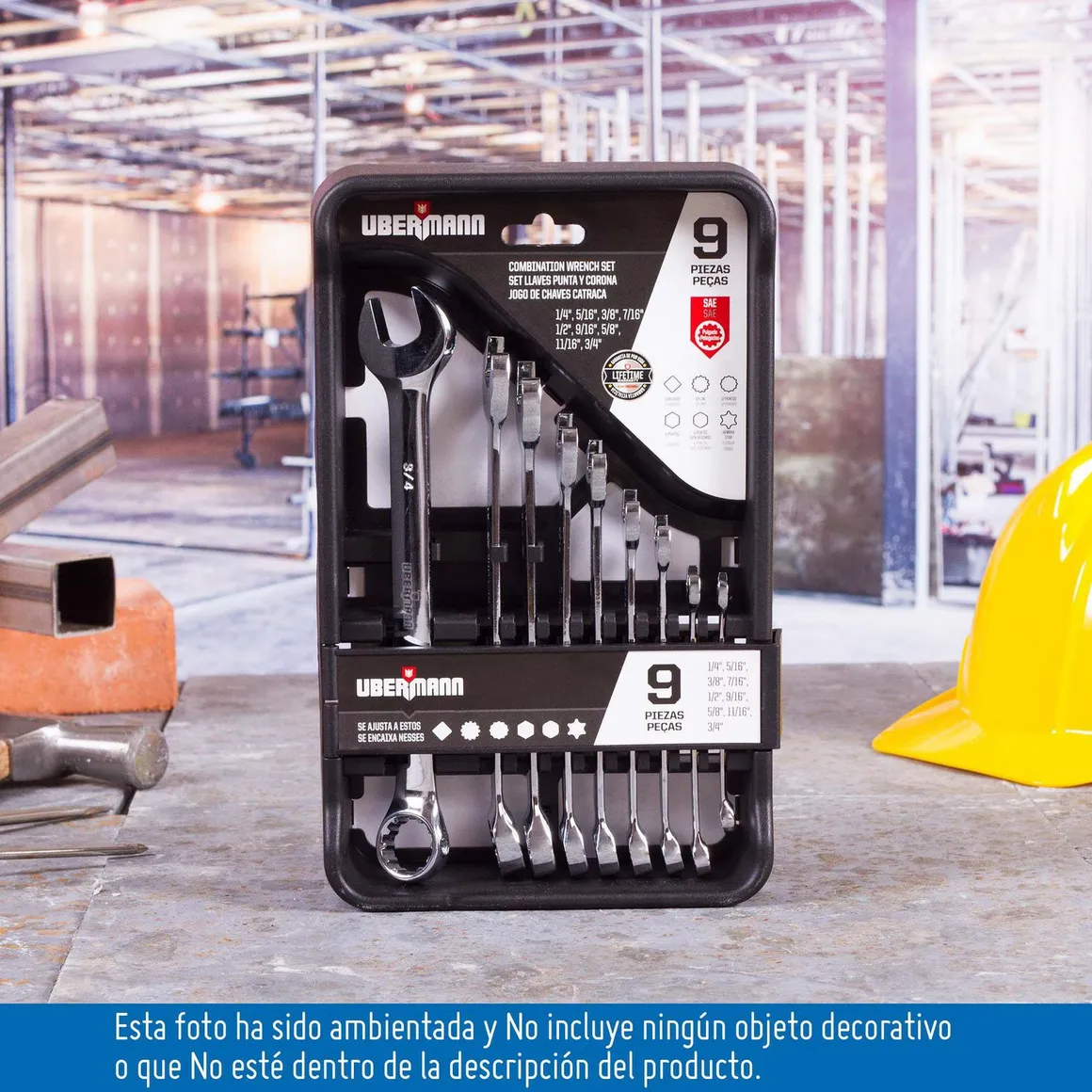 Juego 9 llaves combinadas 1/4-3/4pg ubermann