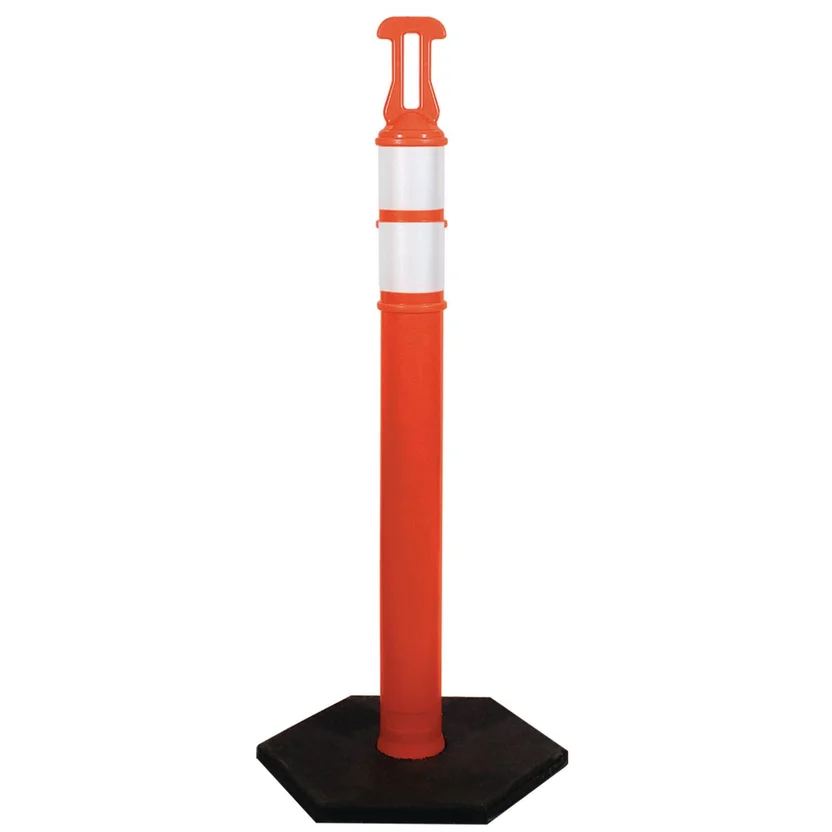 El Poste Vial Naranja con Base de 1.20m de Jyrsa es la solución ideal para delimitar áreas de trabajo o zonas de peligro en tu construcción o proyecto. Su color naranja de alta visibilidad y sus dos cintas reflejantes te ayudarán a mantener la seguridad en tu espacio de trabajo. Además, su base negra de 39 cm de ancho y 39 cm de largo le da estabilidad y firmeza al poste, asegurando que se mantenga en su lugar.