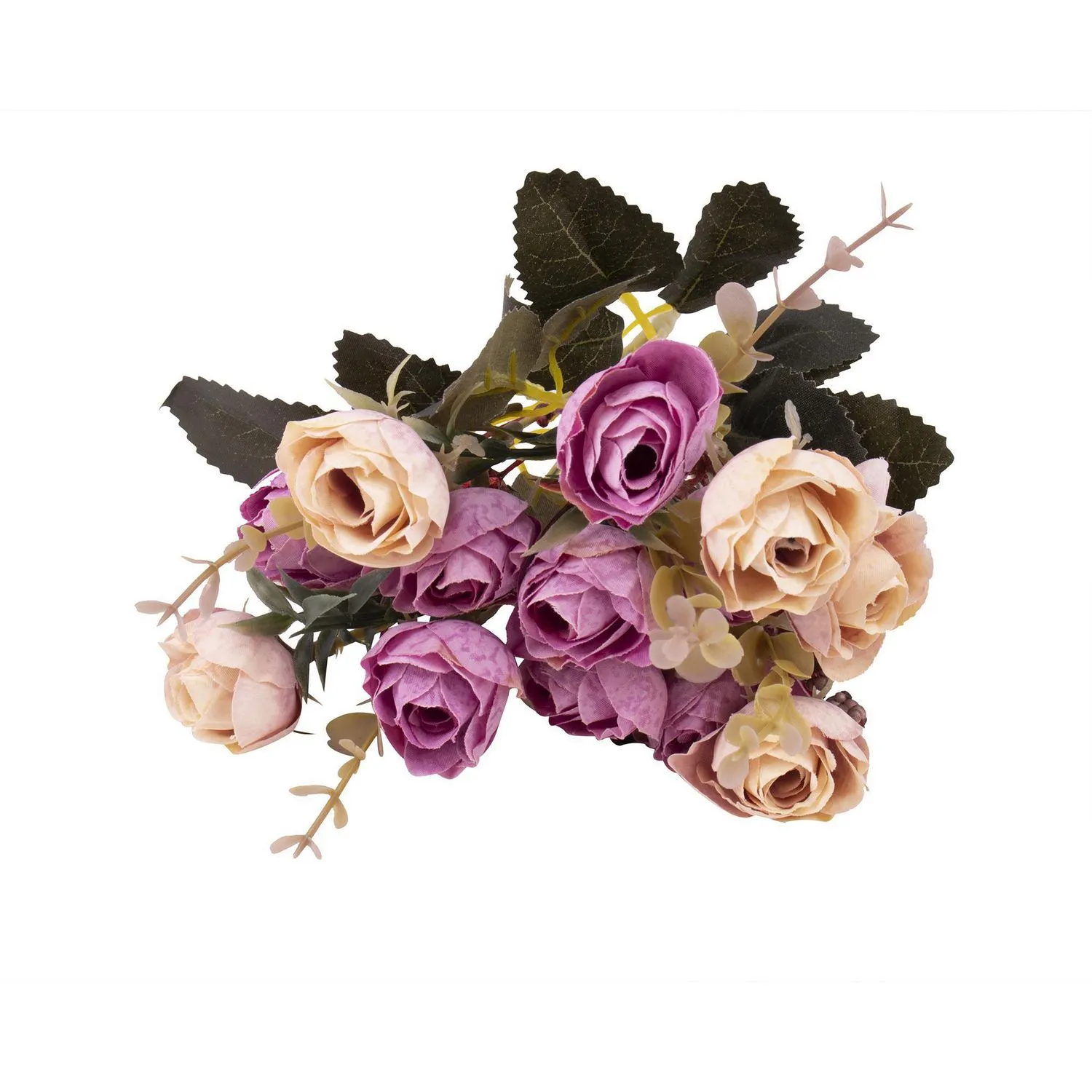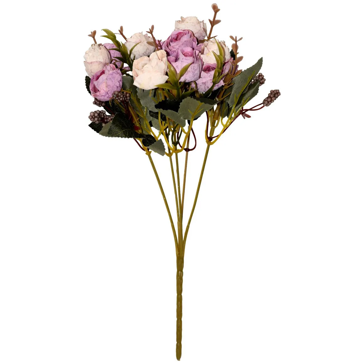 Dale un toque de color y elegancia a tu hogar con este hermoso ramo de rosas Baby Lavander. Con sus delicados tonos morados y beige, este ramo artificial de 5 juegos te permitirá disfrutar de la belleza de las flores sin tener que preocuparte por su cuidado. Su diseño realista y sus hojas verdes le darán un toque natural a cualquier espacio.