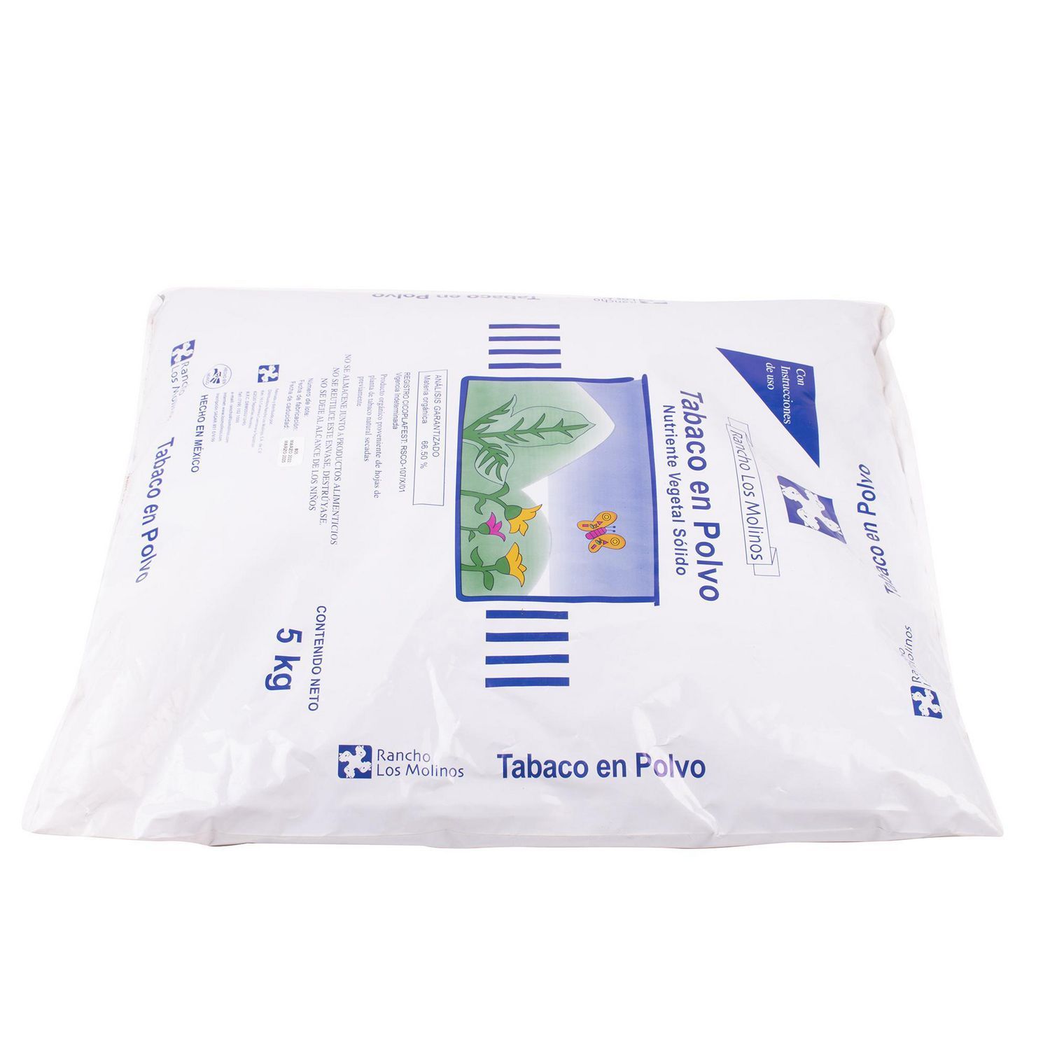 El Tabaco en Polvo de Rancho Los Molinos es un producto orgánico con un 88.50% de materia orgánica. Su presentación en bolsa te permite almacenarlo fácilmente. El producto está garantizado por un mes y su uso es ideal para combatir caracoles, ácaros gallina ciega y otras plagas.