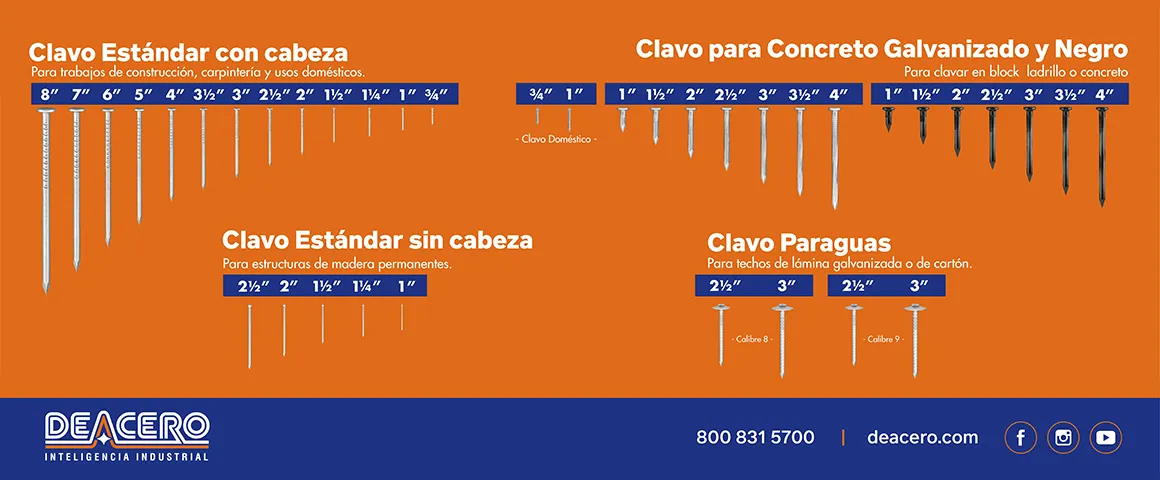 Aproximadamente 75 clavos por kilogramo, Clavo estandar de 4"