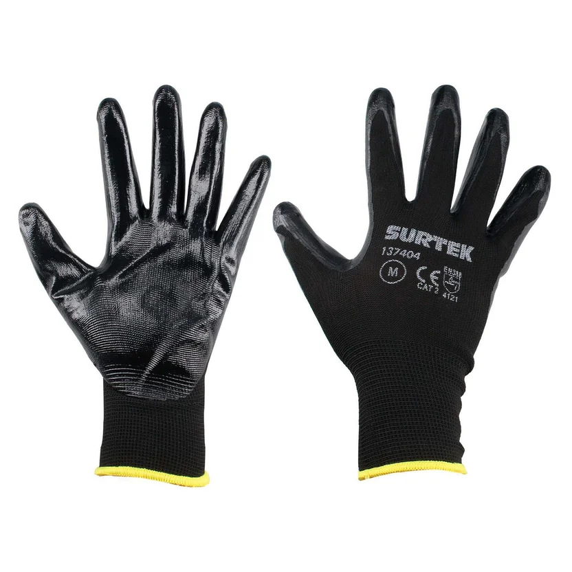 Guantes Nylon recubrimiento de nitrilo talla grande Surtek, gran sensibilidad al tacto y ajuste perfecto, excelente rendimiento, resistentes al corte, lavables, gran sujeción en materiales ligeramente aceitosos, ideal para ensambles de industrias electrónicas.