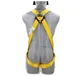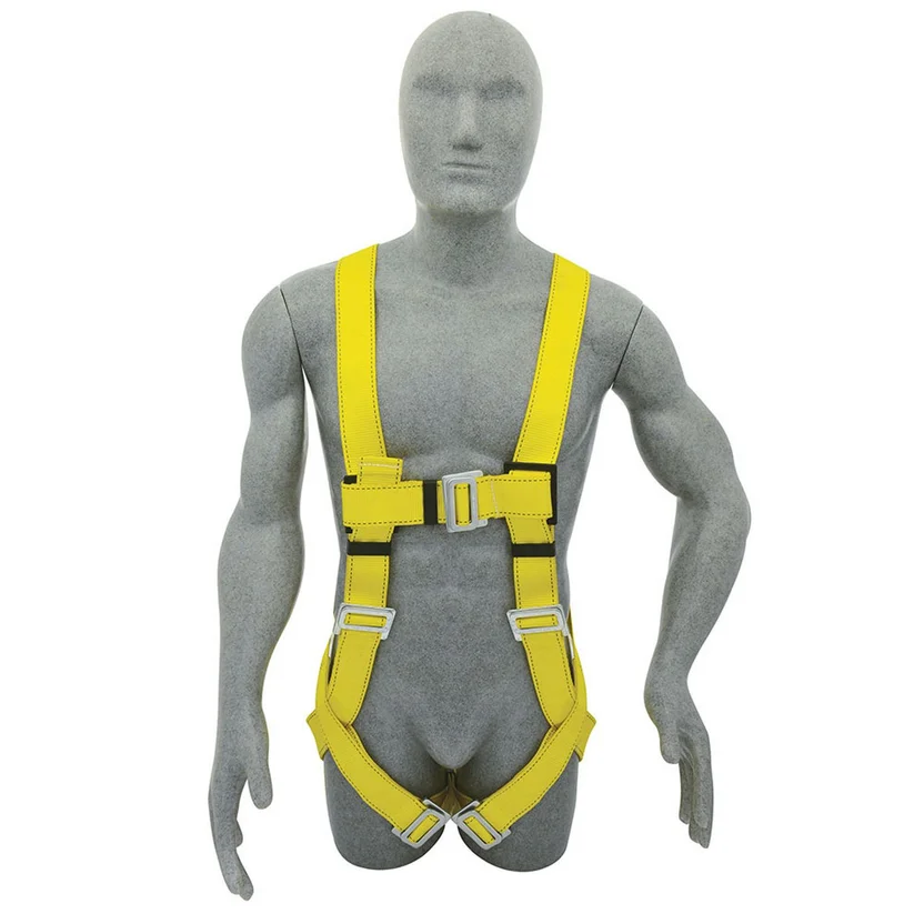 Arnés contra caídas unitalla, anillo en la espalda y hebillas de conexión rápida, cinta de nylon que resiste la abrasión, químicos y rayos ultravioleta