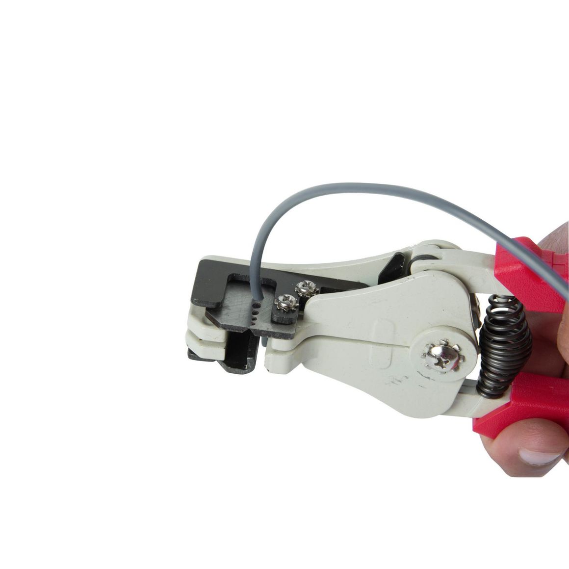 Este pelacable automático está diseñado para trabajos industriales y cuenta con un sistema de aislamiento que te protege de descargas eléctricas. Su material de acero garantiza durabilidad y resistencia. El pelacable automático Gardner Bender te permite pelar, apretar y fijar cables de forma fácil y segura. ¡No pierdas tiempo con herramientas complicadas, este pelacable te ayudará a realizar tus proyectos de forma rápida y eficiente!