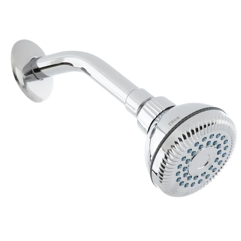 La regadera 4507B tiene un diámetro de 8.5 cm y un ancho de 9 cm, lo que la hace ideal para una ducha cómoda y relajante. Su color metálico le da un toque elegante a tu baño. Además, incluye un brazo y chapetón para una instalación fácil y segura.