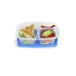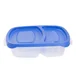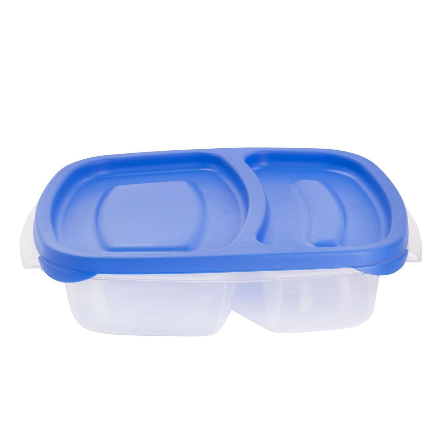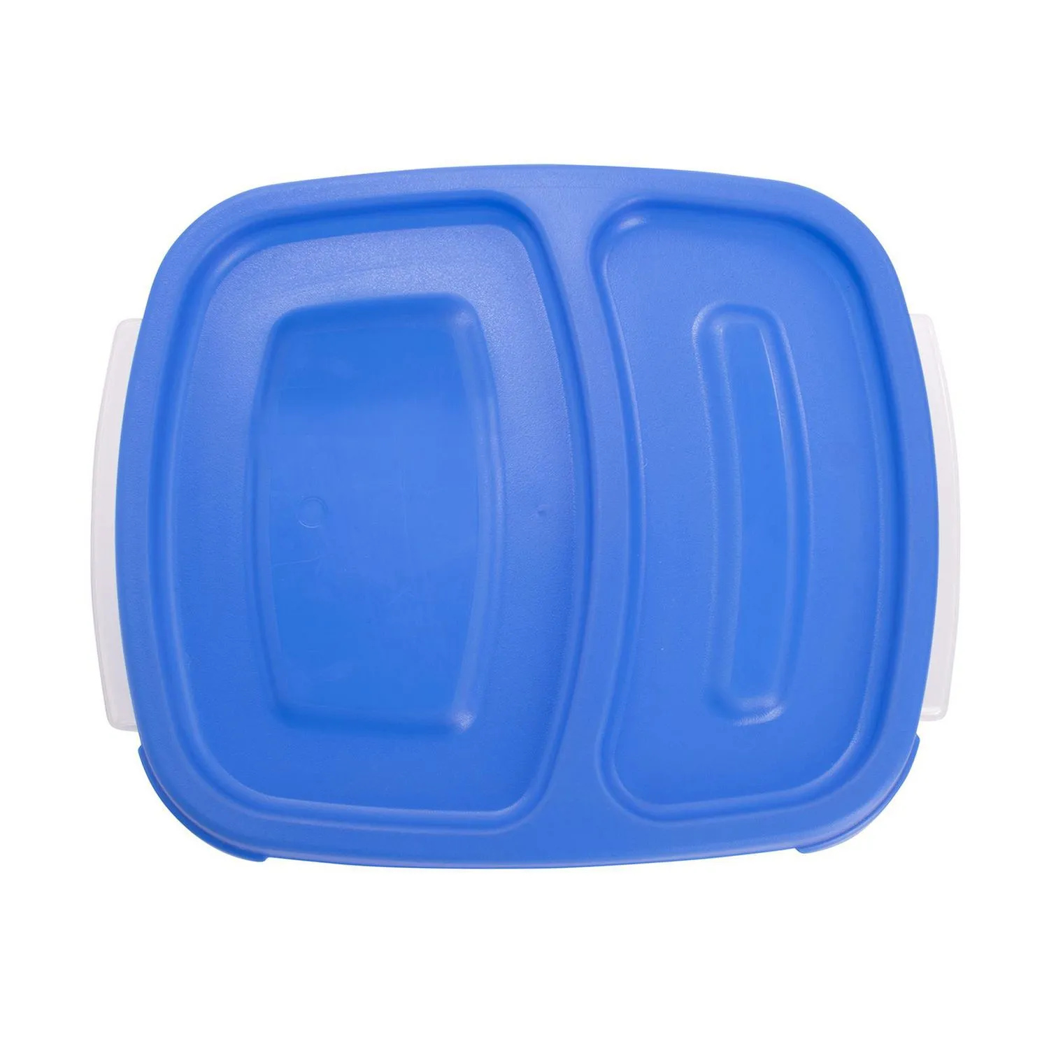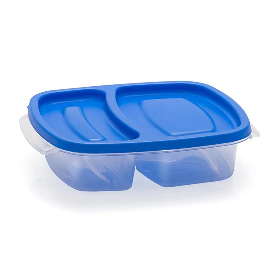 Este contenedor está hecho de plástico resistente y cuenta con 2 compartimentos para que puedas organizar tus alimentos. Su color transparente te permite ver fácilmente el contenido y su tapa azul le da un toque de color a tu cocina. El contenedor es fácil de limpiar y se puede lavar en el lavavajillas.