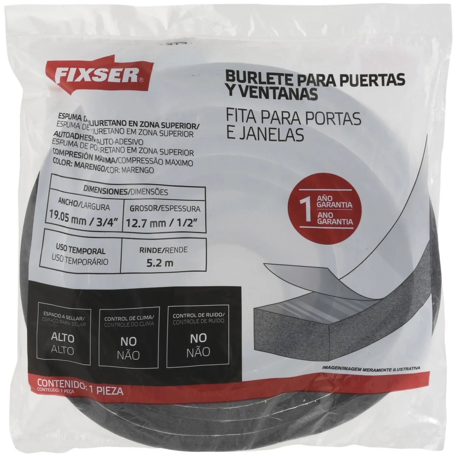 La cinta adhesiva de hule espuma Fixser tiene un ancho de 1.9 cm y un alto de 1.2 cm, lo que la hace ideal para sellar espacios pequeños y grandes. Su material de espuma de poliuretano la hace resistente y duradera, y su diseño autoadhesivo facilita su instalación. Además, la cinta es ideal para sellar espacios entre puertas y ventanas, evitando que el frío o el calor se filtren.