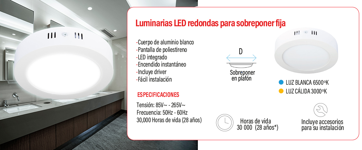 Genera y disfruta un entorno visual agradable con esta lámpara para sobreponer en techo que genera una potente luz blanca, brillante y sin parpadeos, dando como resultado un ambiente dinámico; Con la iluminación LED de IUSA disfrutarás el ambiente perfecto en tu casa sin tener que preocuparte por mantenimiento ni reemplazos, ya que te ofrecen una vida útil de 30,000 horas y un ahorro energético de 85%. Sin duda, una fuente de luz en la que puedes confiar; Ilumina tus habitaciones y distingue todo como debe ser con esta luminaria LED que te encantará.
