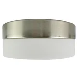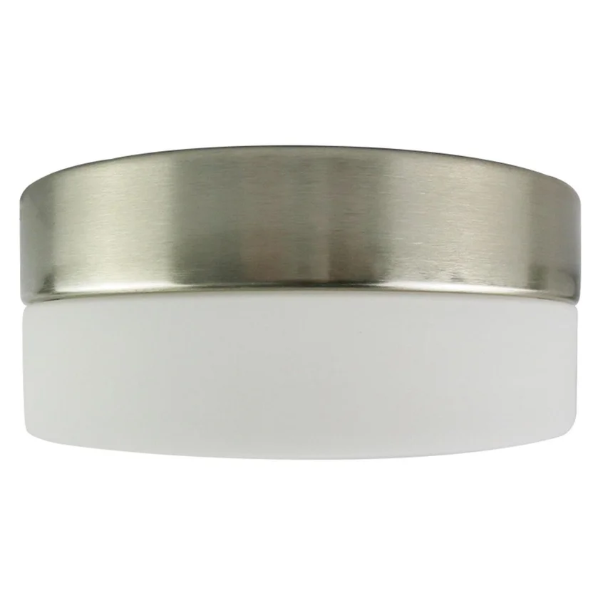 Fabricado con base de metal acabado cromo y pantalla de cristal blanco acabado opalino. Entrada de foco e27.