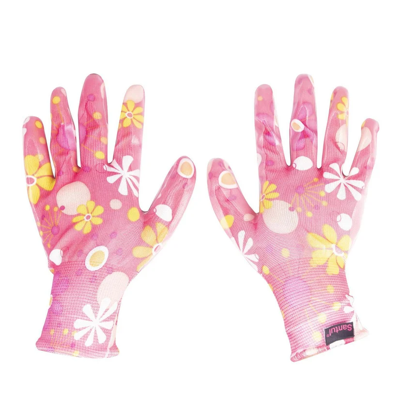 Dale a tu jardín el toque de color que necesita con estos guantes de poliéster, recubiertos de nitrilo, ideales para el cuidado de tus plantas. Su diseño rosa con flores te encantará y te permitirá trabajar con comodidad y seguridad. ¡No te preocupes por ensuciarte las manos, estos guantes te protegerán!
