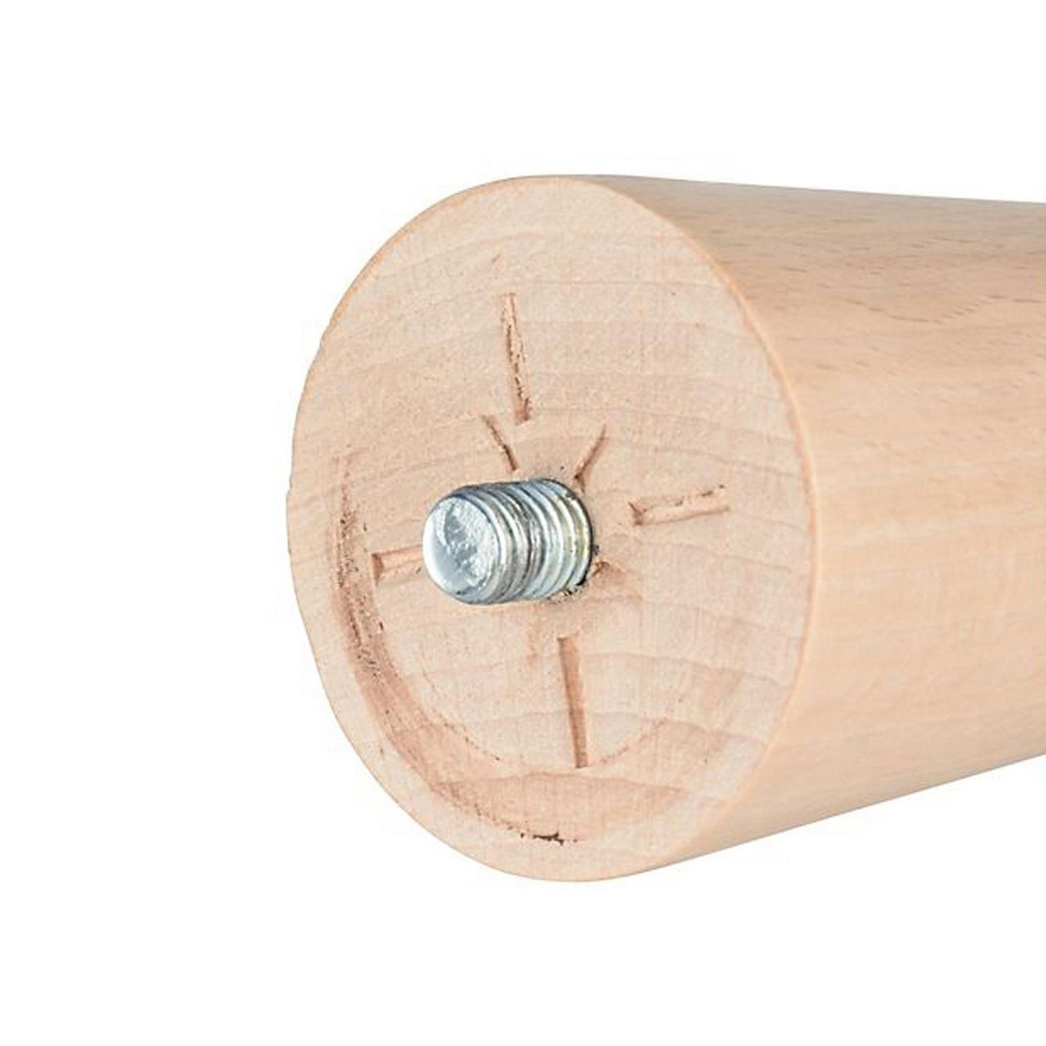 Dale un toque elegante y moderno a tus muebles con la Pata de Madera Cónica Laca Natural de 300 mm. Fabricada con madera de alta calidad, esta pata te ofrece una resistencia de hasta 150 kg, ideal para soportar tus muebles sin problemas. Su acabado en laca natural le da un toque cálido y natural a tu hogar, combinando a la perfección con cualquier estilo de decoración.