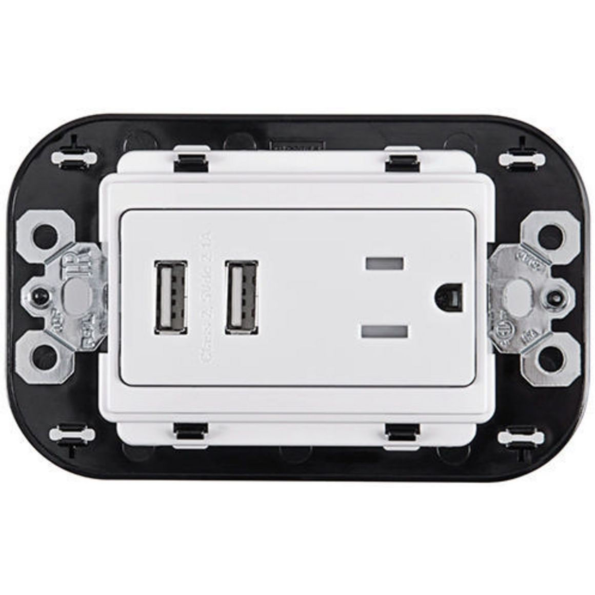 Enchufe 2P+T con seg. infant., 2 cargadores USB 2.1 A, 3 mód.