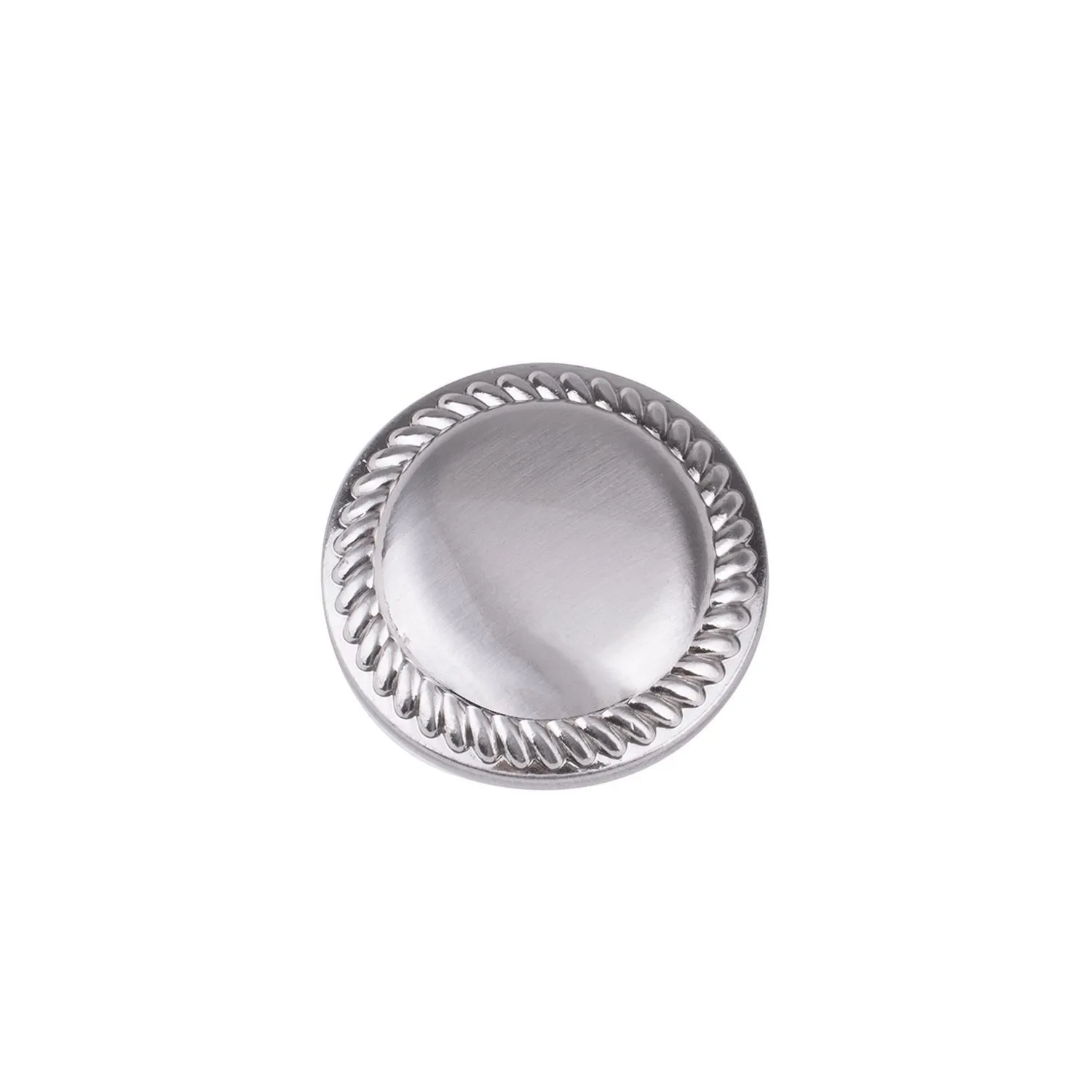 Dale un toque elegante a tus muebles con la Jaladera Botón #14 de Fixser. Su diseño redondo grabado con cuerda alrededor del botón le da un toque clásico y sofisticado a cualquier espacio. Fabricada en níquel satinado, esta jaladera es resistente y duradera, ideal para usar en cajones, puertas y gabinetes. ¡No esperes más para darle un toque especial a tu hogar!