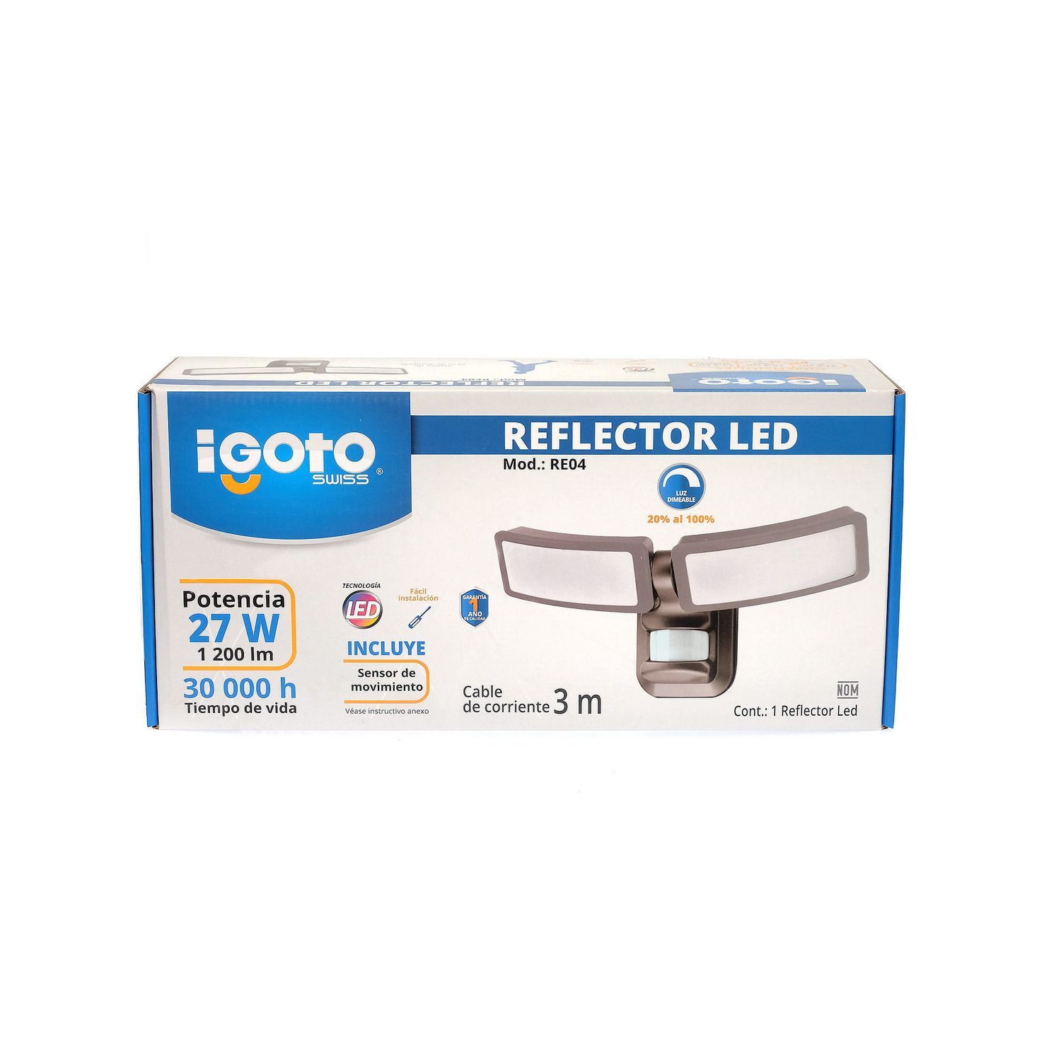 Ilumina tu hogar con el Reflector LED con Sensor de Movimiento RE04 de Igoto. Este reflector te ofrece una iluminación potente y eficiente, con una potencia de 27W y 2,000 lúmenes. Su sensor de movimiento te brinda seguridad y comodidad, encendiéndose automáticamente cuando detecta movimiento. Además, su diseño moderno y elegante se adapta a cualquier estilo de decoración.