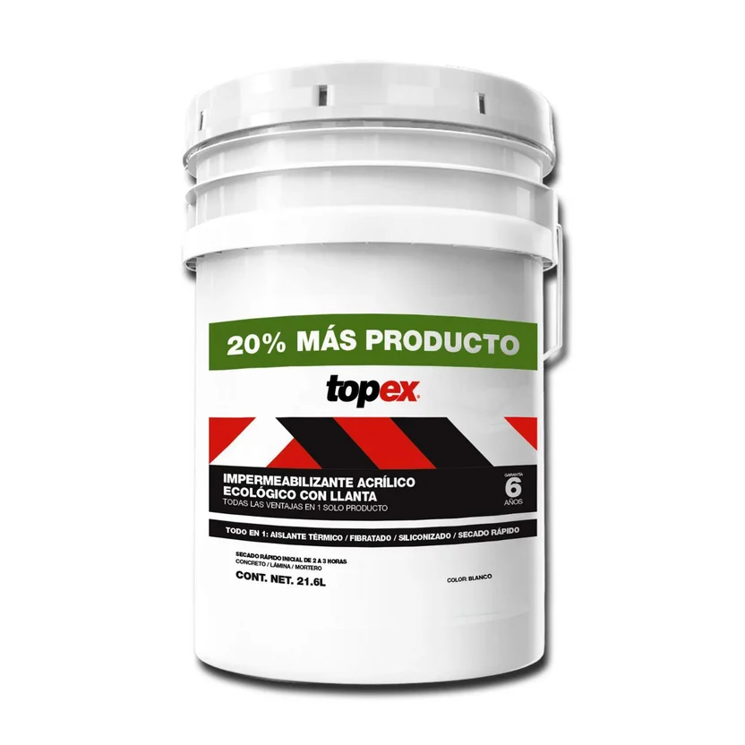 Impermeabilizante Acrílico ecologico Topex - 6 Años de 21.6 litros - Blanco