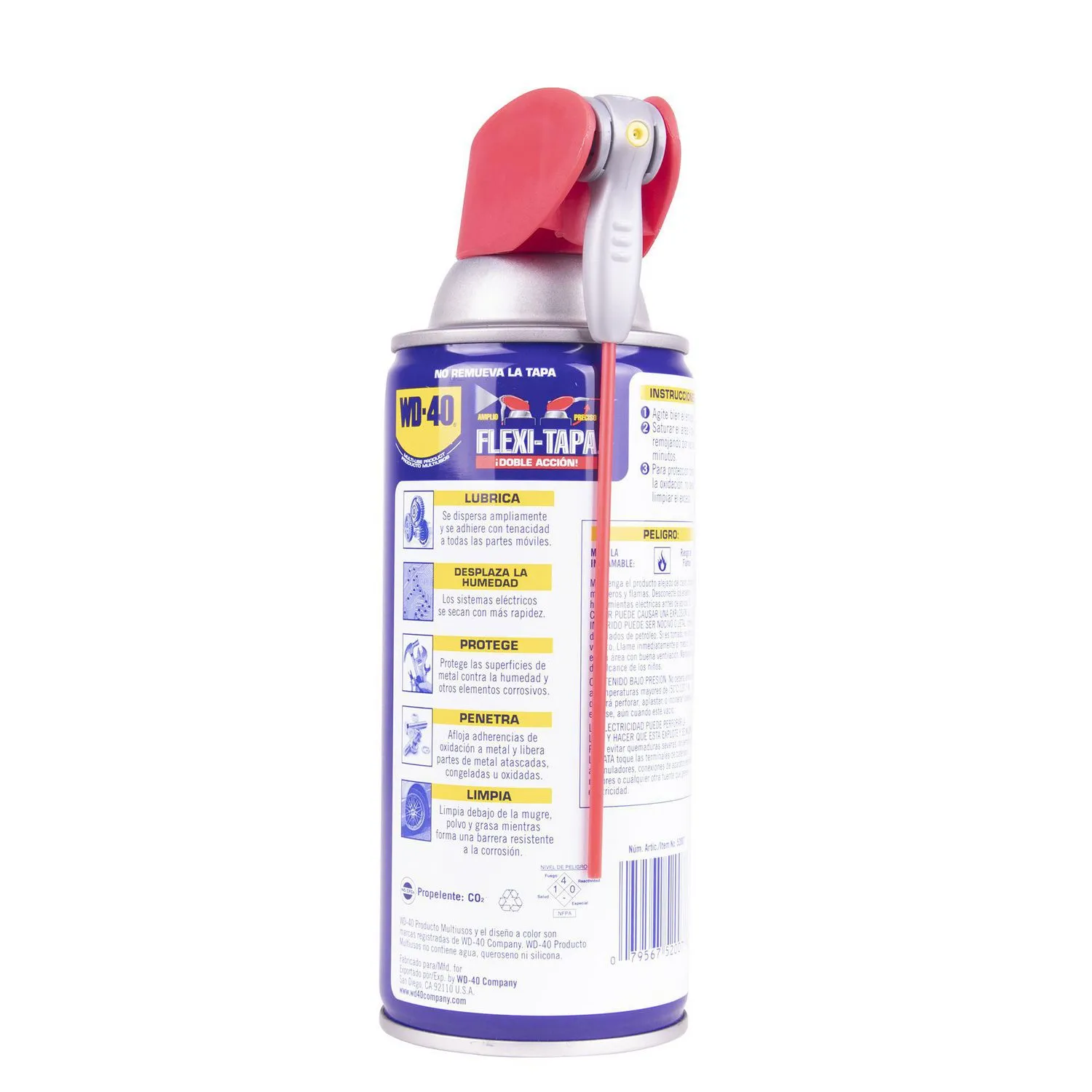 El Aerosol Multiusos WD-40 Flexi-Tapa es la solución ideal para cualquier tarea que requiera lubricación, protección contra la corrosión o limpieza. Con su práctico diseño de boquilla flexible, podrás llegar a cualquier lugar difícil de alcanzar. Además, su fórmula de doble acción te permite limpiar, lubricar y proteger en un solo paso. ¡No te quedes sin el WD-40 Flexi-Tapa, tu aliado perfecto para el hogar y el taller!