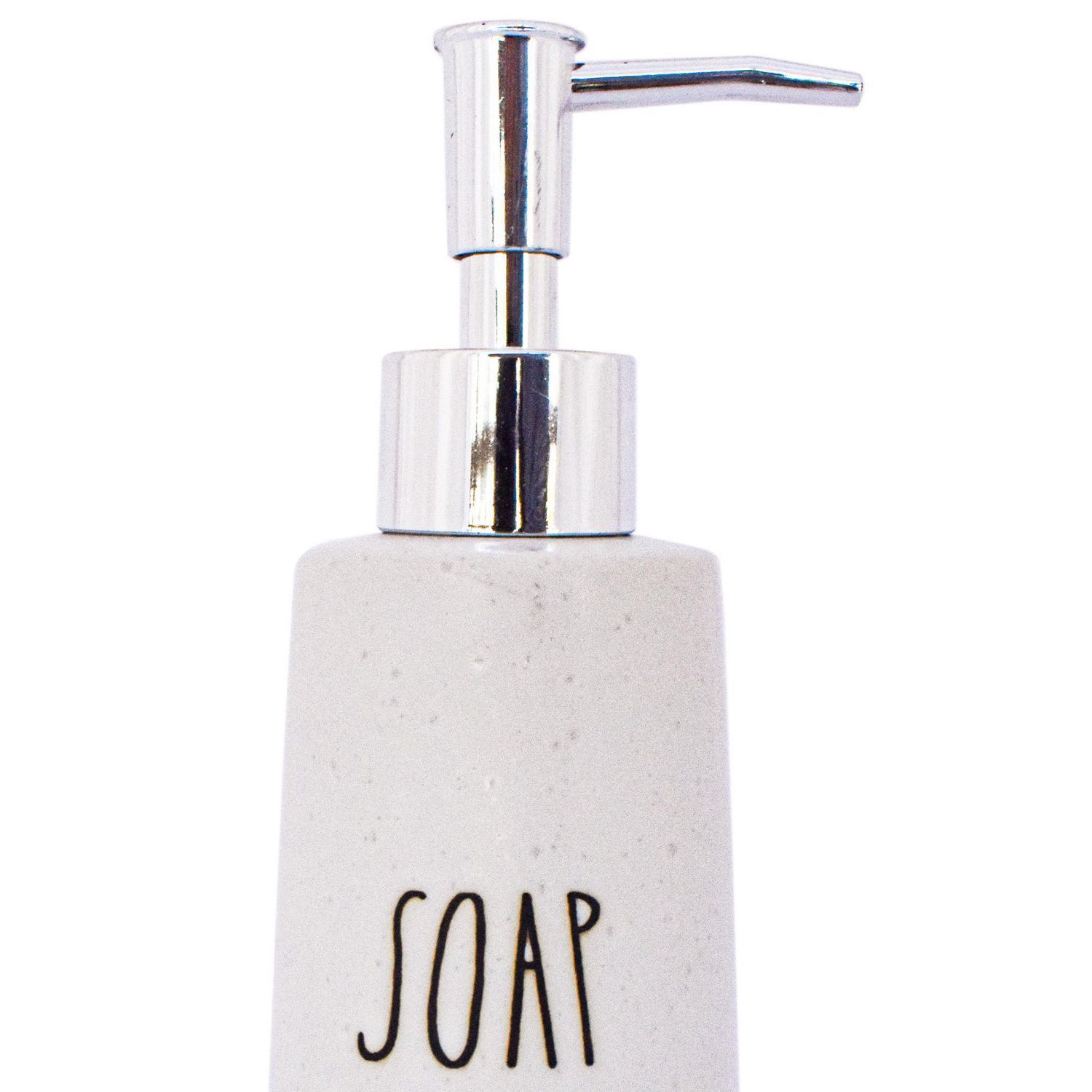 Dale un toque elegante a tu baño con este despachador de jabón. Su diseño moderno y minimalista, con la palabra 'SOAP' en blanco sobre un fondo blanco texturizado, le dará un toque sofisticado a tu espacio. El dispensador está hecho de cerámica de alta calidad, lo que lo hace resistente y duradero. Además, su dispensador de acero inoxidable le da un toque de lujo y facilita la dispensación del jabón.