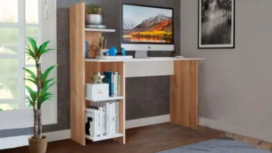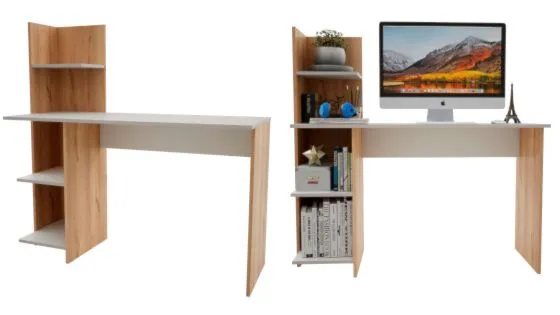 Su diseño con biblioteca incorporada te permite una buena gestión y realización de las tareas, además te ayuda a mantener un espacio ordenado. Está elaborado en madera MDP de 15mm con recubrimiento melamínico que brinda estabilidad y durabilidad al mueble, y los herrajes son metálicos.