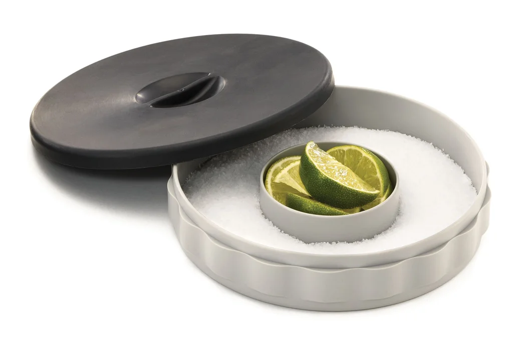 Este escarchador está hecho de plástico de alta calidad, lo que lo hace resistente y duradero. Además, su diseño de 2 piezas te permite guardar el sal y las rodajas de limón de forma separada, manteniendo todo limpio y organizado. El escarchador tiene un estilo ejecutivo urbano, perfecto para cualquier cocina moderna.