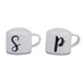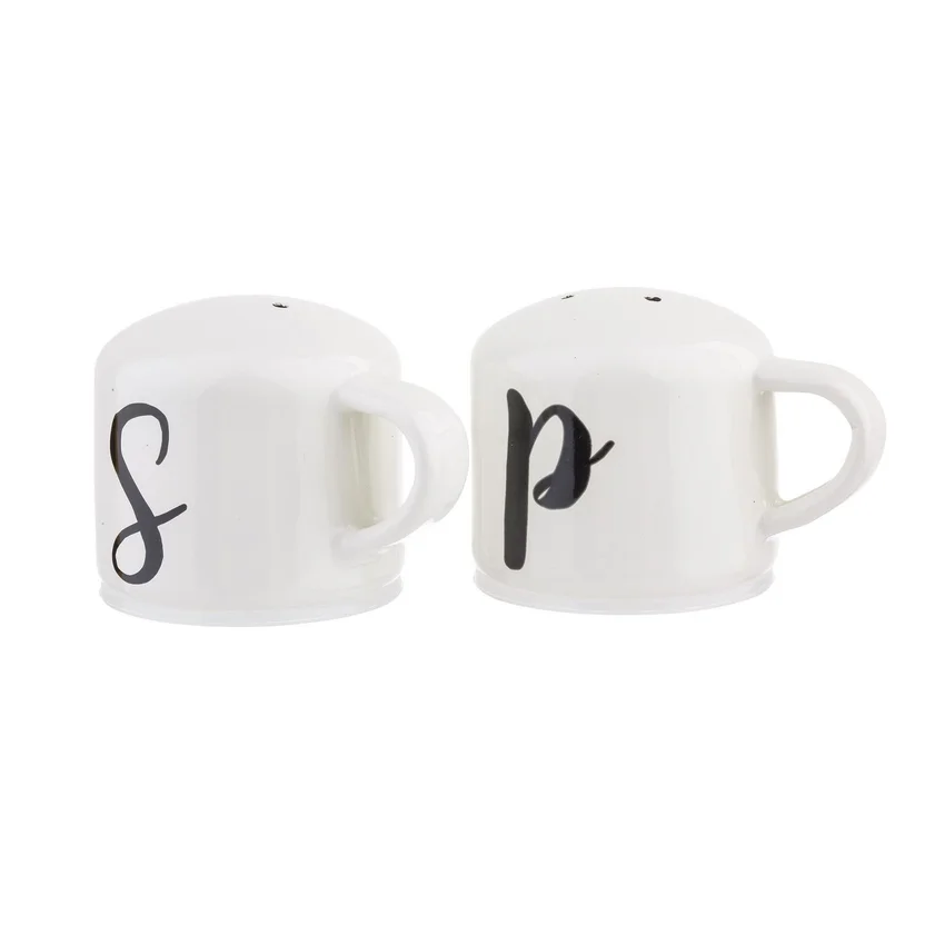 Este juego de salero y pimentero está hecho de porcelana de alta calidad, lo que lo hace resistente y duradero. Su color blanco le da un toque de sofisticación a cualquier mesa. El juego incluye dos piezas, una para la sal y otra para la pimienta, ambas con la letra correspondiente en color negro.