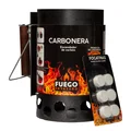 El Encendedor de Carbón con Fogatinas es la herramienta ideal para encender tu carbón de manera rápida y eficiente. Con su chimenea de encendido rapid fire, podrás disfrutar de tu parrillada en minutos. Además, incluye un paquete de fogatinas para que puedas encender tu carbón sin problemas. ¡No te preocupes por el humo, este encendedor es fácil de usar y seguro para toda la familia!