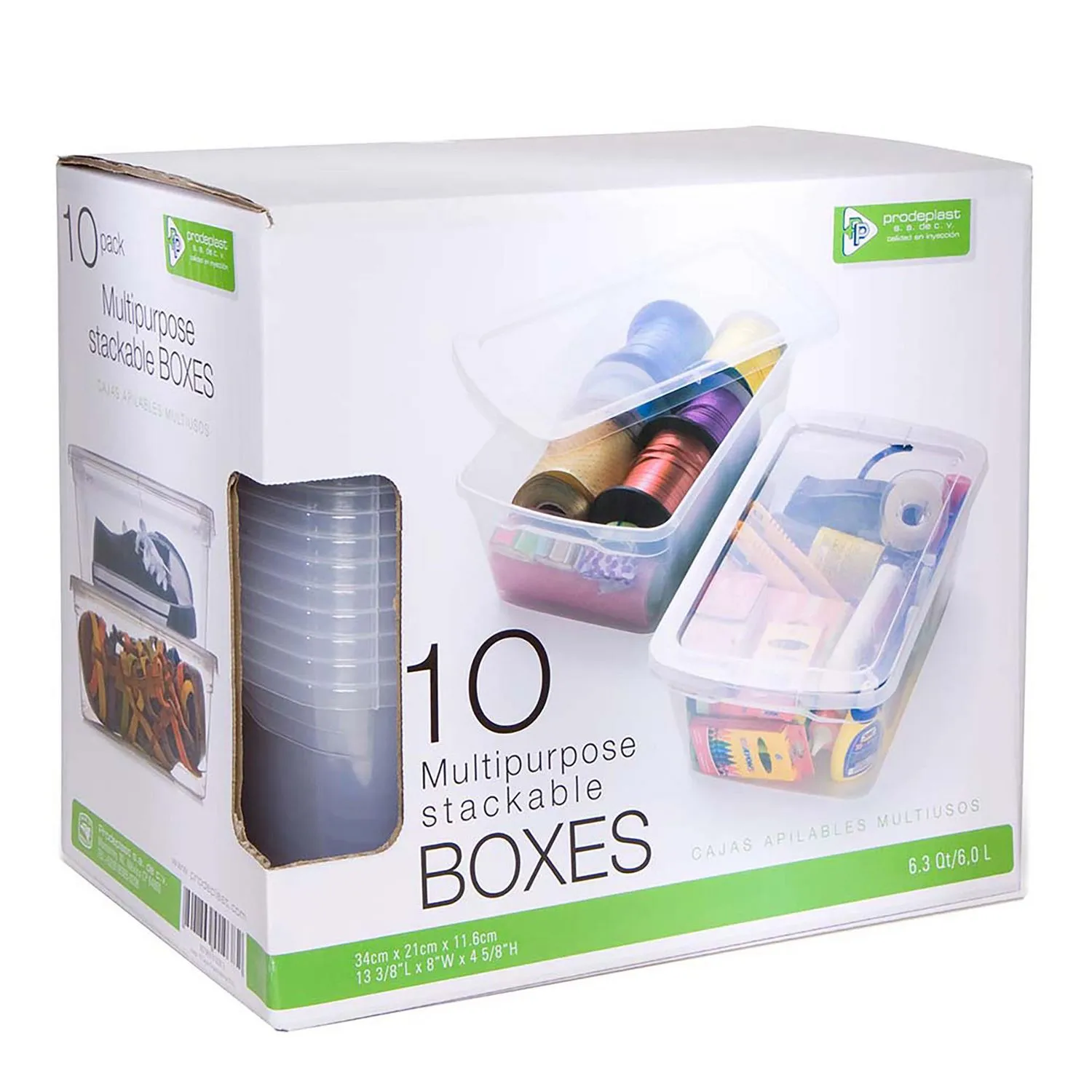 | Características | Juego con 10 cajas organizadoras de plástico transparente de 6 lt con medidas 34 x 21 x 11.6 |