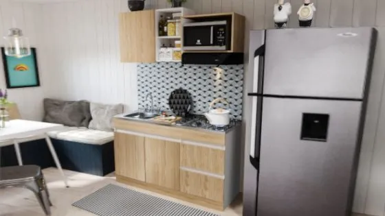 Su diseño es sobrio y sus tonalidades aportan elegancia y a los espacios. Organiza tus elementos de cocina y disfruta con familia y amigos de deliciosas recetas. Está elaborada en madera MDP de 15mm con recubrimiento melamínico que brinda estabilidad y durabilidad al mueble, y los herrajes son metálicos.
