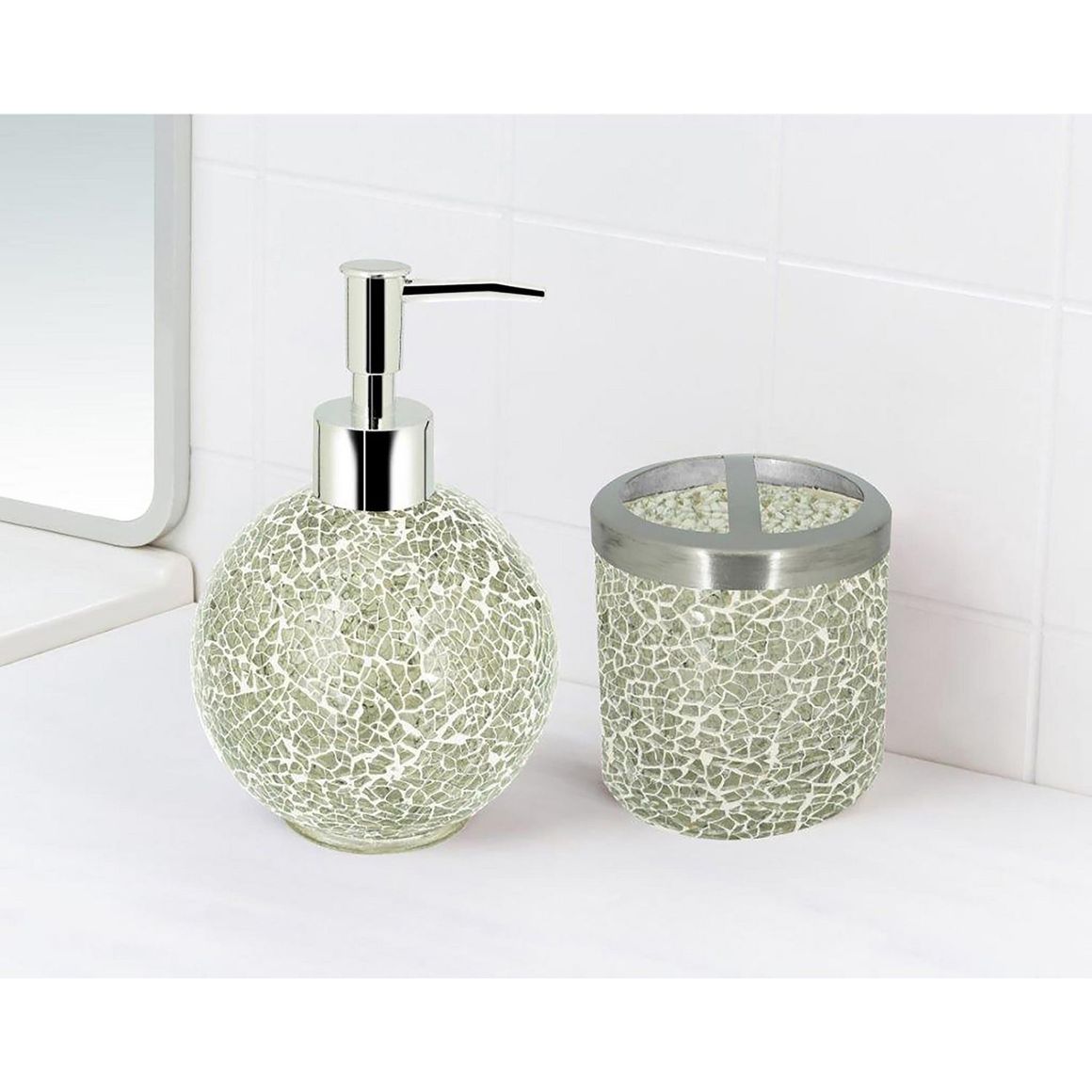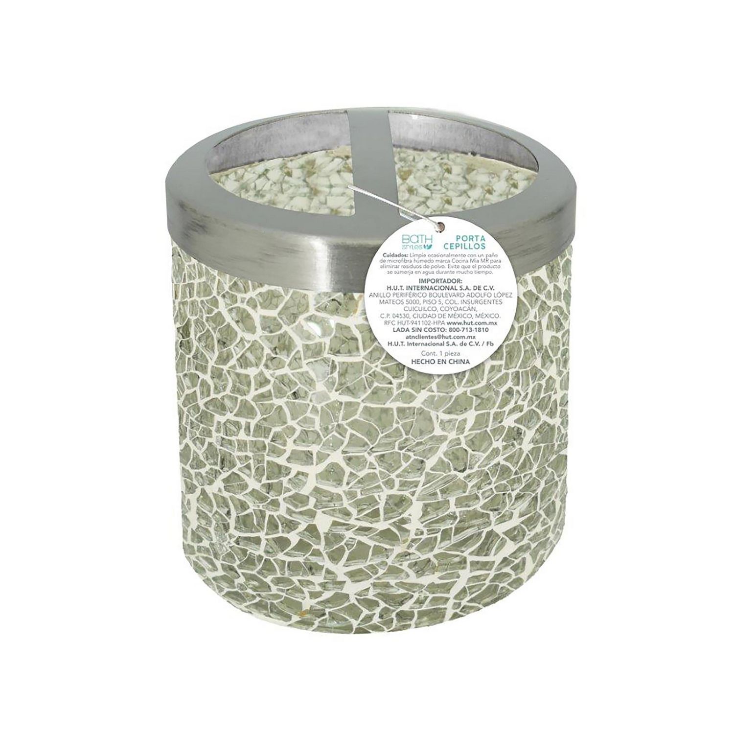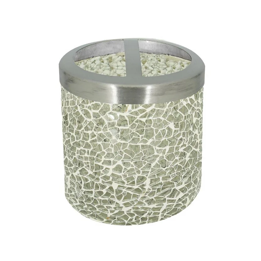 Dale un toque elegante a tu baño con este moderno porta cepillos de vidrio craquelado. Su diseño único con detalles en plata le dará un toque sofisticado a tu espacio. Con capacidad para cuatro cepillos dentales, este porta cepillos te ayudará a mantener tu baño organizado y con estilo.