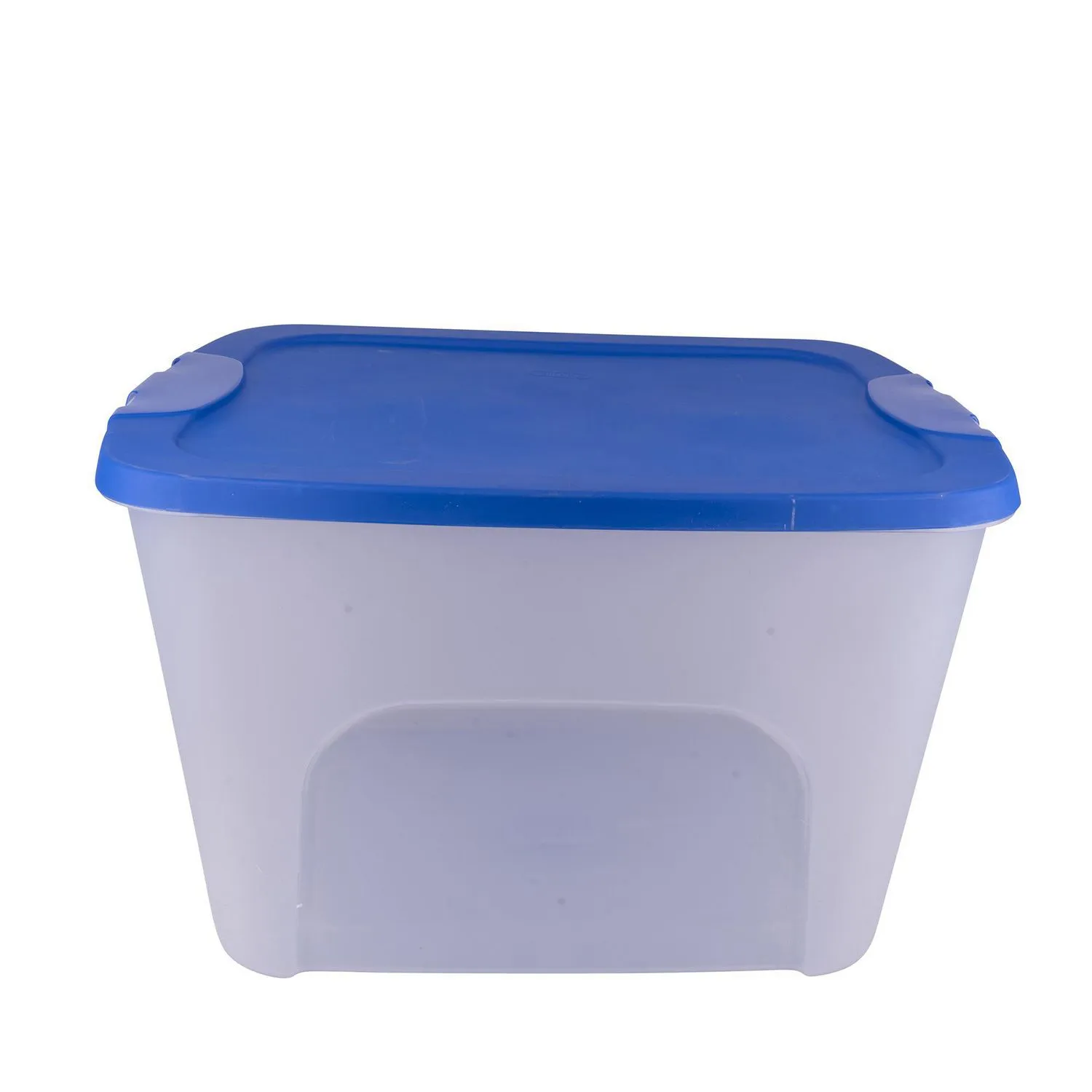 La Caja box transparente con tapa Azul de 87 litros está hecha de polipropileno virgen, lo que la hace muy resistente y duradera. Tiene una capacidad de 87 litros, lo que te permite guardar una gran cantidad de objetos. Además, es apilable, lo que te permite aprovechar al máximo el espacio de almacenamiento. Su color transparente te permite ver fácilmente el contenido, mientras que su tapa azul le da un toque de color a tu espacio.