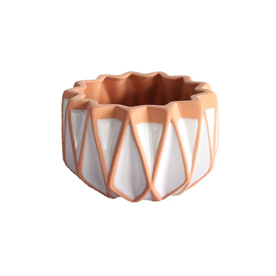 La Maceta Estrella Chica tiene un diseño en forma de estrella, con un color barro y blanco. Mide 14.5 cm de largo y ancho, y 10 cm de alto. Está hecha de barro cerámico, lo que la hace resistente y duradera.