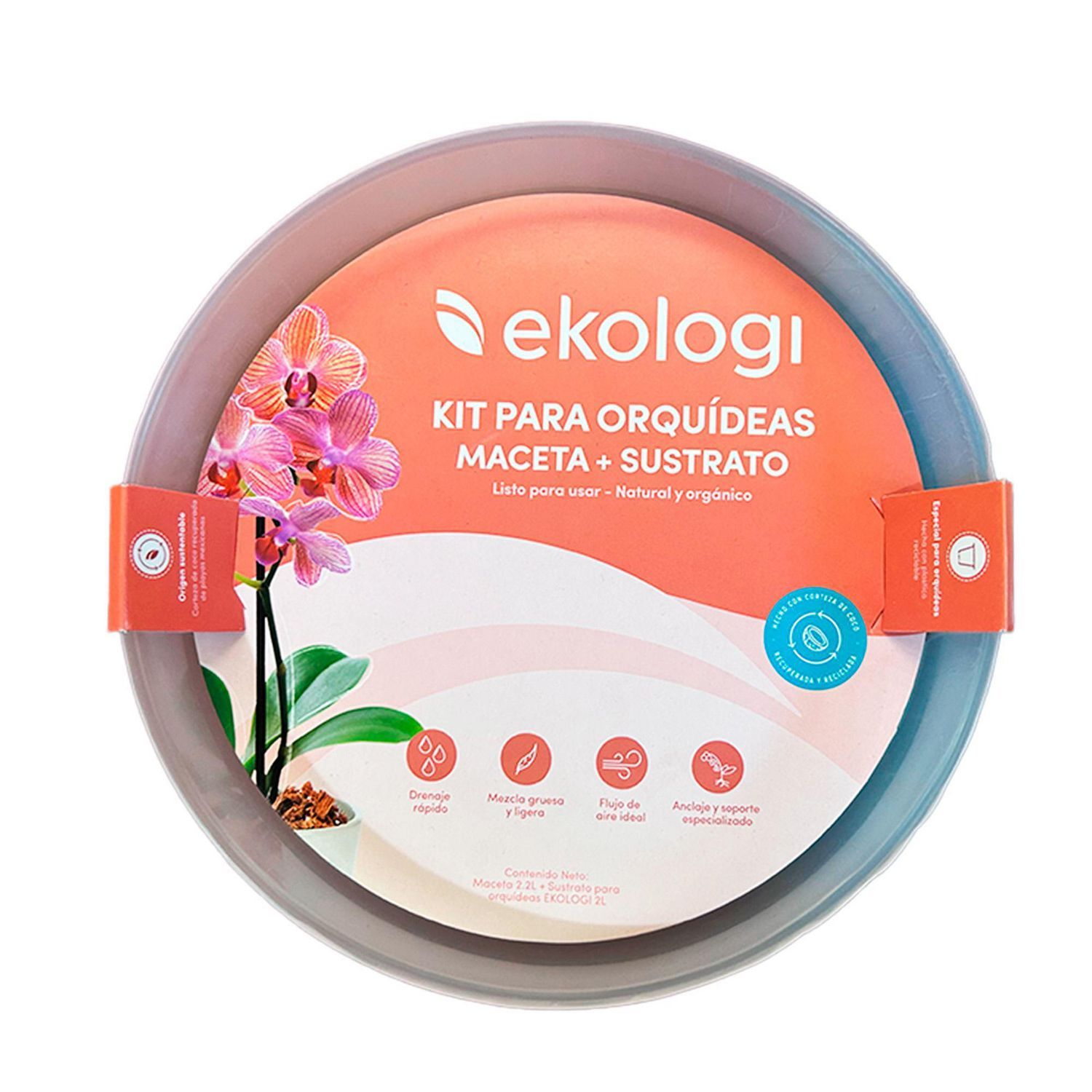 Dale vida a tu hogar con el Kit para Orquídeas Ekologi. Este kit incluye una maceta de 2.2 litros hecha con plástico reciclable y un sustrato de 2 litros con corteza de coco recuperada de playas mexicanas. Es ideal para plantar y trasplantar orquídeas, y está listo para usar. ¡No pierdas la oportunidad de tener un toque de naturaleza en tu hogar!
