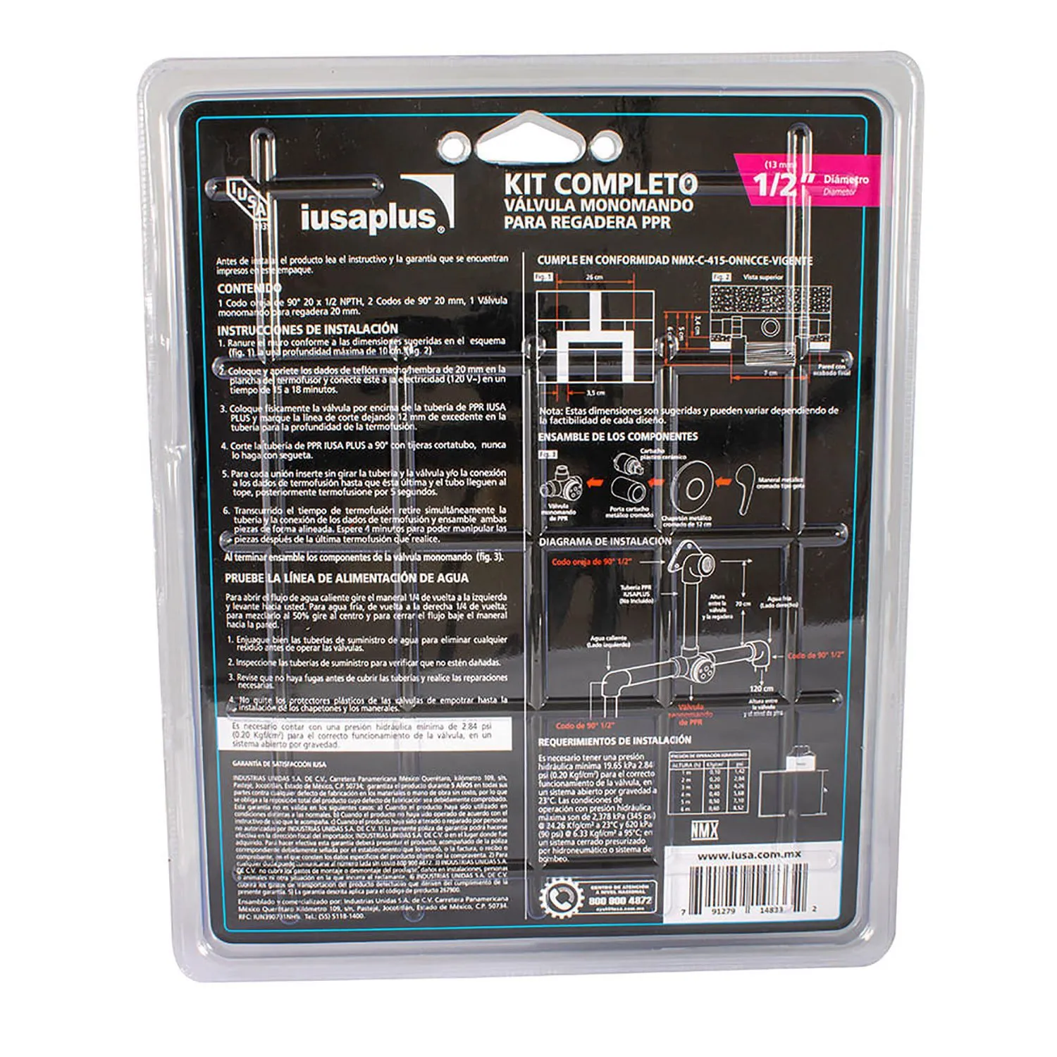 El Kit Regadera Monomando PPR IUSA es la solución ideal para tu baño. Con su diseño moderno y fácil instalación, podrás disfrutar de una ducha con agua fría o caliente sin fugas. Su unión por termofusión garantiza una conexión segura y duradera. ¡No te preocupes por la presión del agua, este kit es compatible con baja y alta presión!