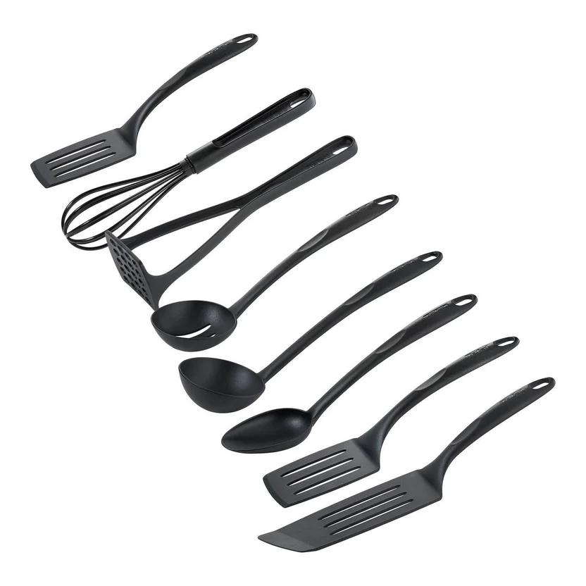 El Juego de 8 Utensilios Bienvenue es perfecto para cualquier cocina. Con su diseño elegante y funcional, este juego te ayudará a preparar tus platillos favoritos con facilidad. Hecho de nylon, es resistente y seguro para usarse en todo tipo de sartenes y ollas con acabado antiadherente, sin dañar el recubrimiento. Además, es ligero y fácil de lavar, ideal para toda la familia.