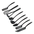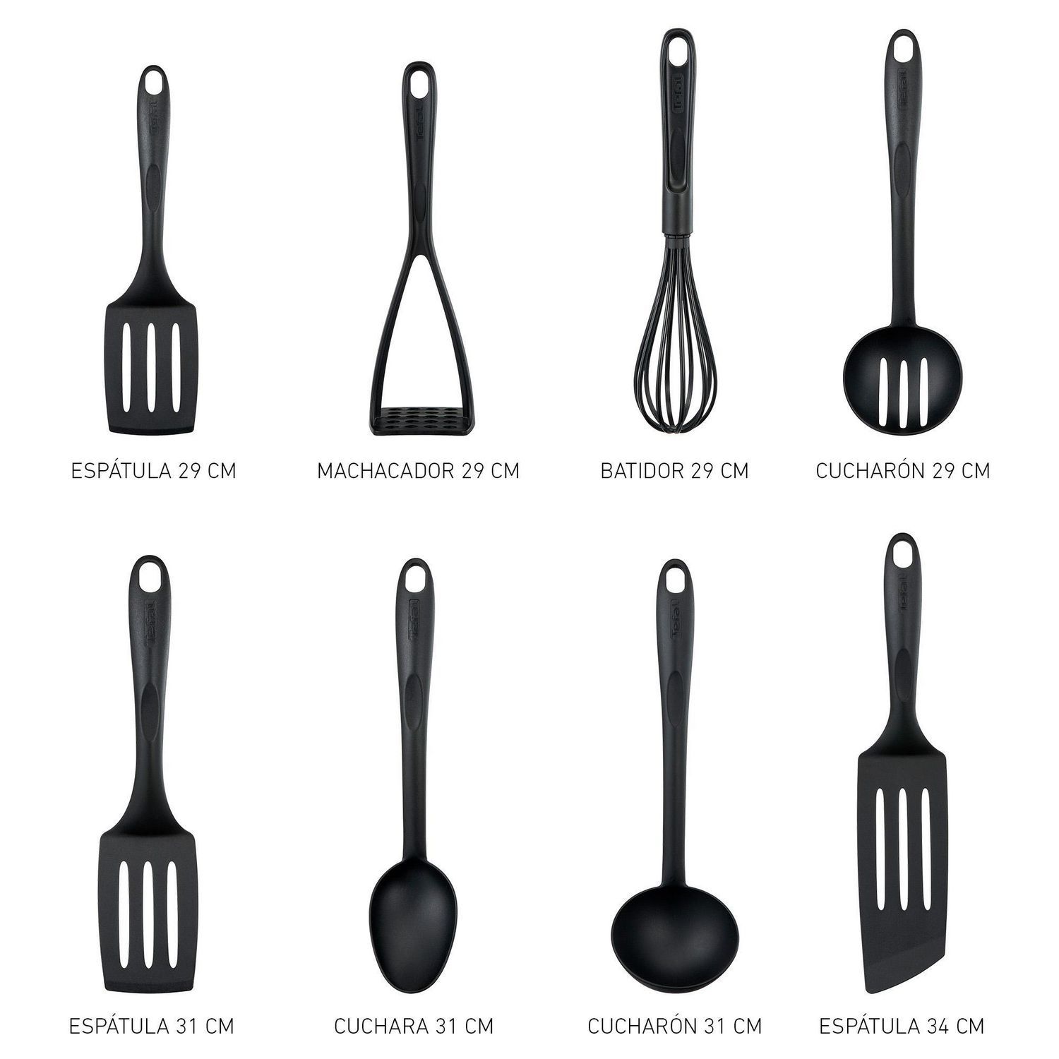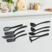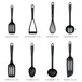 Este juego de utensilios incluye 8 piezas, entre las que se encuentran cucharas, espátulas y un machacador. Cada pieza tiene un largo de 16 cm y un ancho de 10 cm, lo que los hace fáciles de manejar y guardar. El color negro le da un toque moderno a tu cocina. El material de nylon es resistente al calor y no se derrite, lo que te permite cocinar con seguridad.