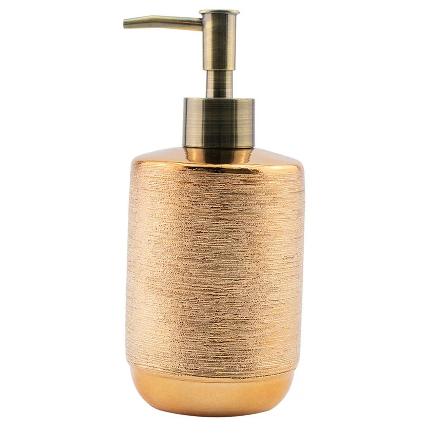 • Diseño elegante: el atractivo dispensador de jabón en oro con una superficie moderna y estructurada establece un acento extravagante en tu baño y aseo de invitados.