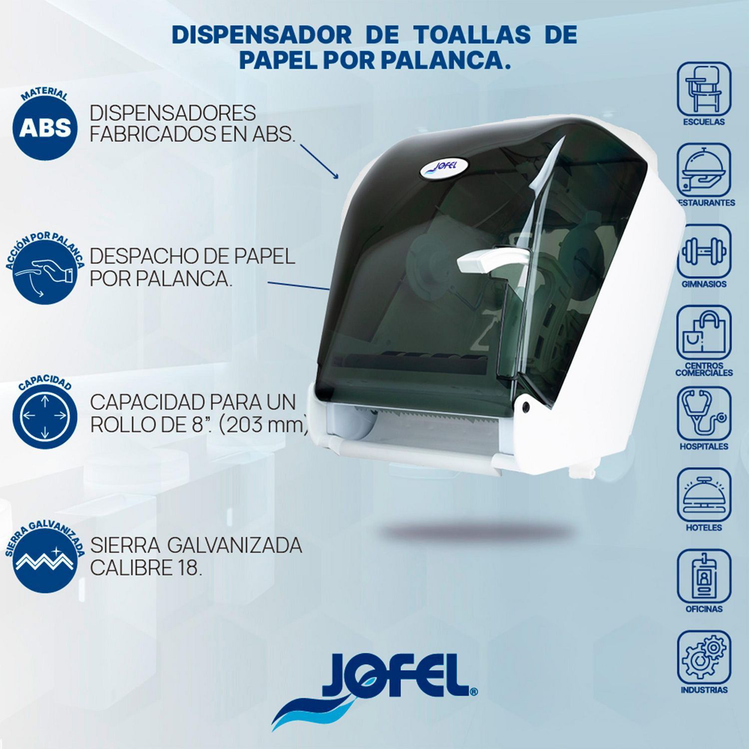 El Dispensador de Toalla con Palanca Smart de Jofel es la solución ideal para mantener tu hogar, oficina o negocio limpio y ordenado. Con su capacidad para 180 toallas en rollo, podrás tener siempre a la mano la cantidad necesaria para cualquier situación. Su diseño moderno y elegante se adapta a cualquier ambiente, y su mecanismo de rodillos evita que el papel se atore, asegurando un uso fluido y sin complicaciones.