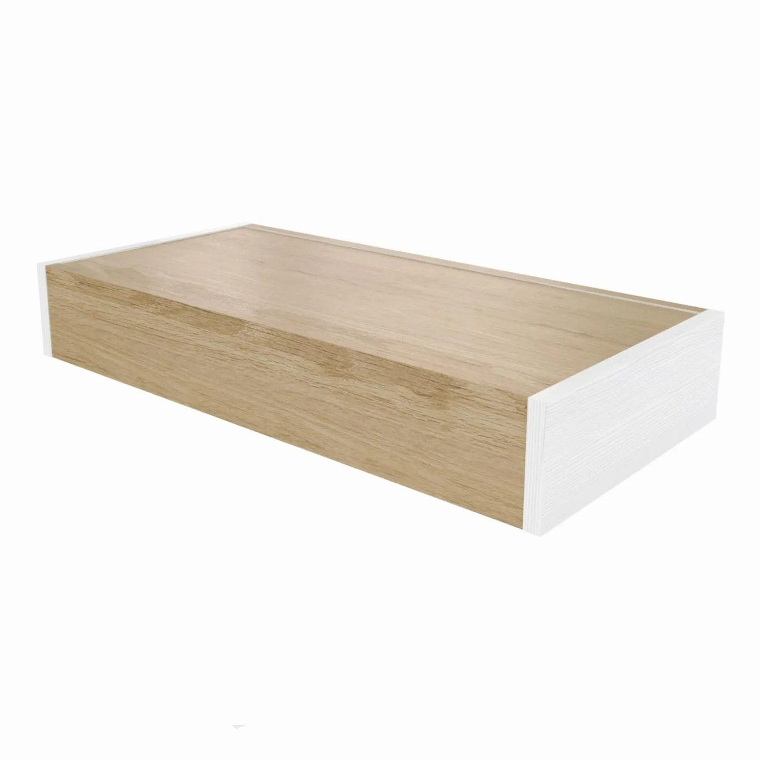Dale un toque moderno y elegante a tu hogar con la Repisa Flotante Rovere Blanco de Maderkit. Esta repisa, con su diseño minimalista y su acabado en color Rovere-Blanco, es perfecta para cualquier espacio, ya sea tu cocina, comedor, dormitorio, estudio, living, oficina o sala de estar. Con un ancho de 63 cm y una profundidad de 30 cm, ofrece una superficie amplia para colocar tus objetos decorativos, libros, plantas o cualquier otro elemento que desees exhibir. Su instalación es sencilla, ya que se fija a la pared con tornillos, y soporta un peso máximo de 5 kg.
