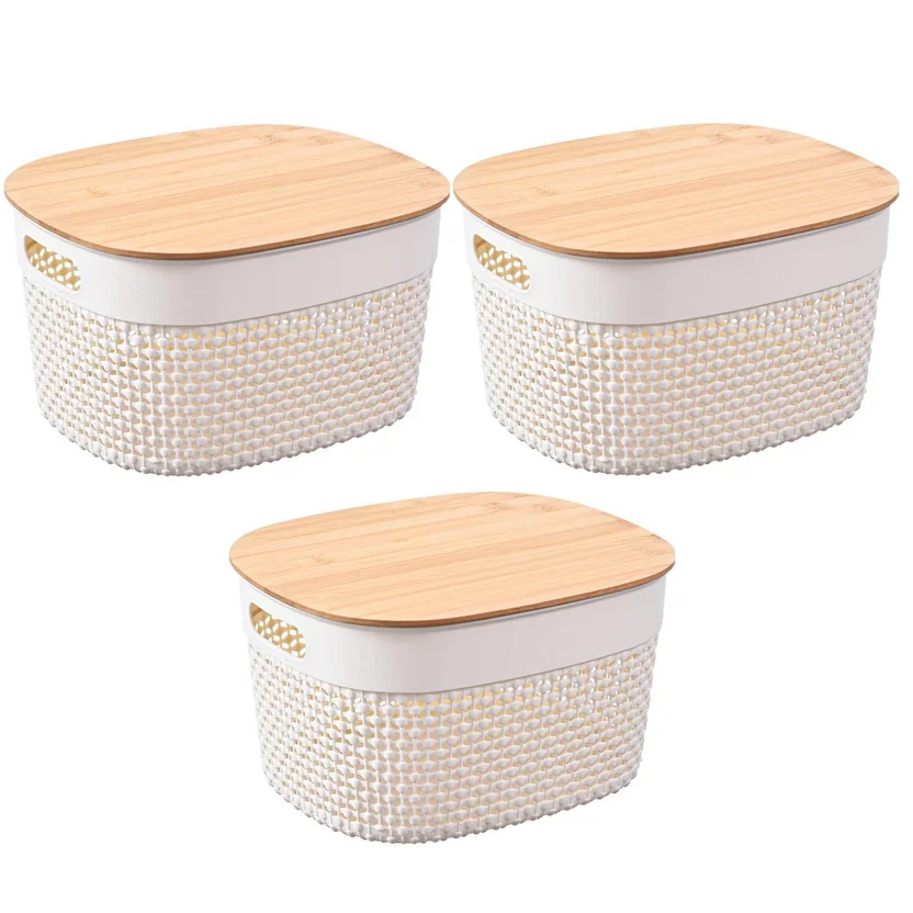 El set 3 cajas plasticas tapa bambu blanco de Just Home Collection son la elección perfecta para la organización y el estilo en tu hogar. Con una gama de tamaños y diseños elegantes, estas canastas añaden un toque de sofisticación a cualquier espacio. Son ideales para almacenar desde ropa hasta juguetes o suministros de oficina. Disfruta de la versatilidad y la calidad que estas canastas aportan a tu hogar, combinando funcionalidad con belleza.