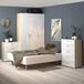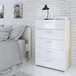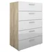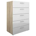La Cómoda 5 cajones blanco Pepe en una encantadora combinación de colores blanco y oak es una adición funcional y estilizada a tu espacio. Este mueble versátil combina un diseño moderno con la calidez y la elegancia de la madera, brindándote una solución de almacenamiento práctica y atractiva. Cada uno de los cinco cajones ofrece un amplio espacio para guardar y organizar tus pertenencias, ya sea ropa, accesorios, documentos o cualquier otro artículo personal. Los cajones están diseñados con rieles que permiten un deslizamiento suave y fácil, lo que facilita su uso diario.