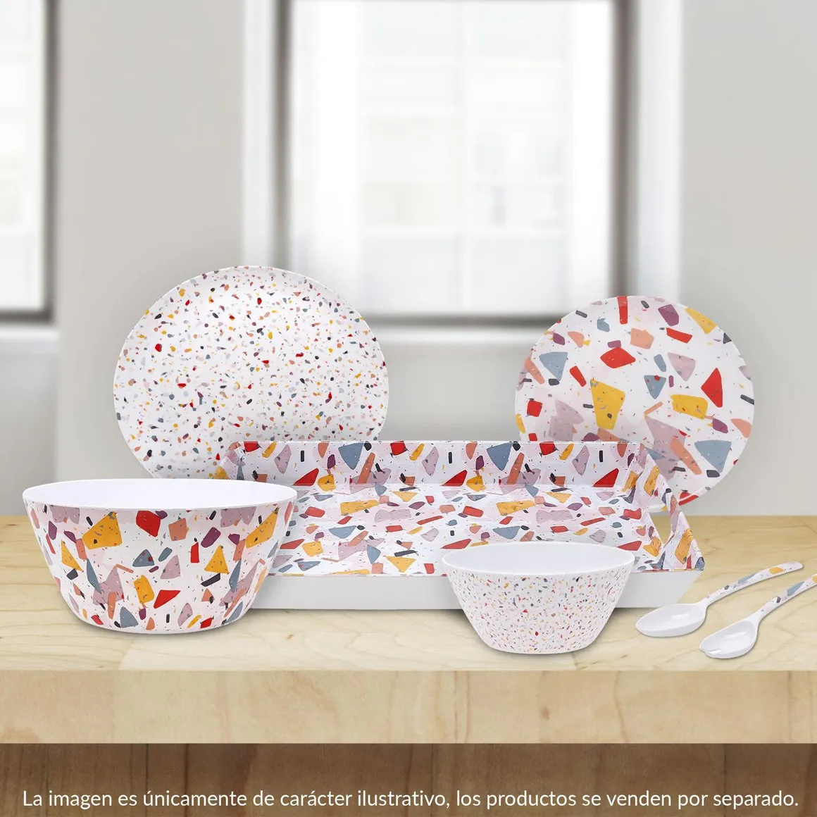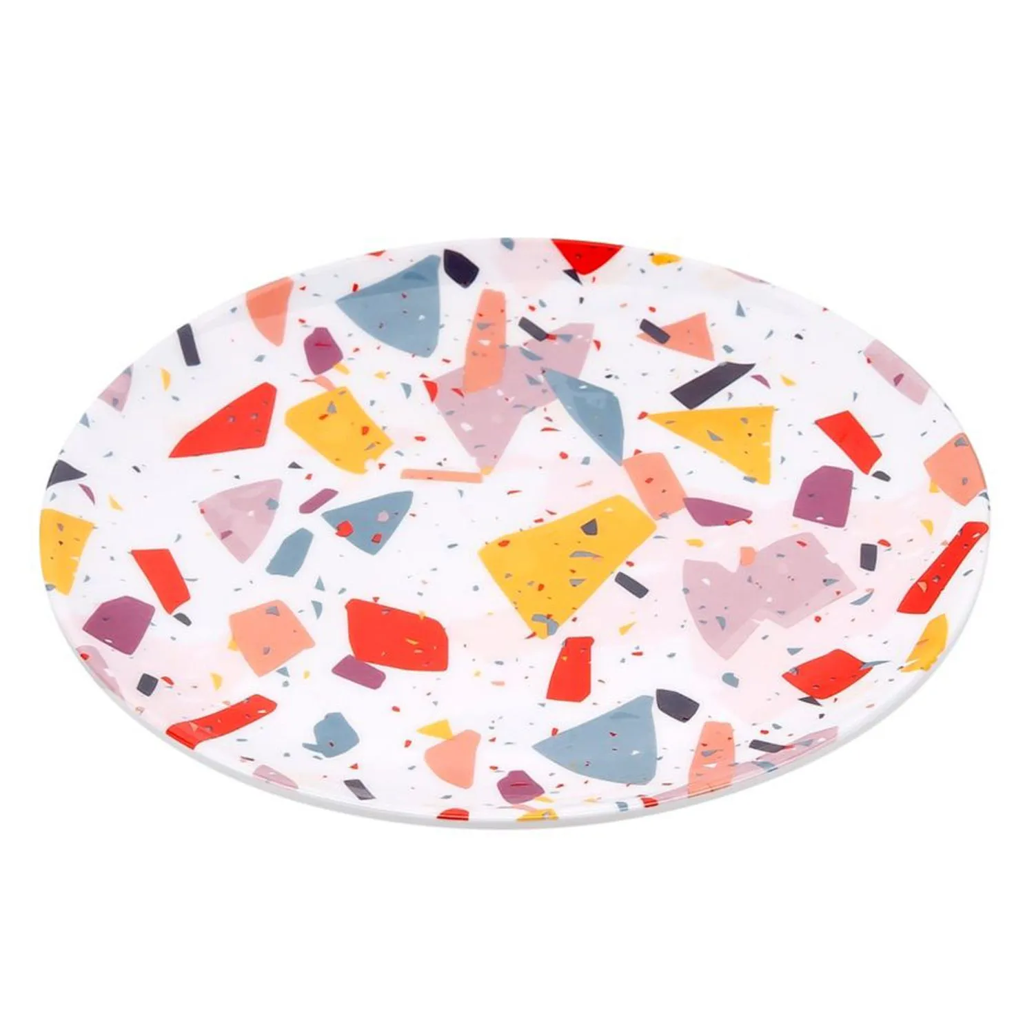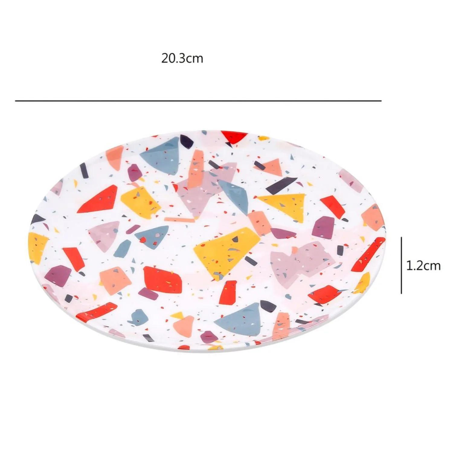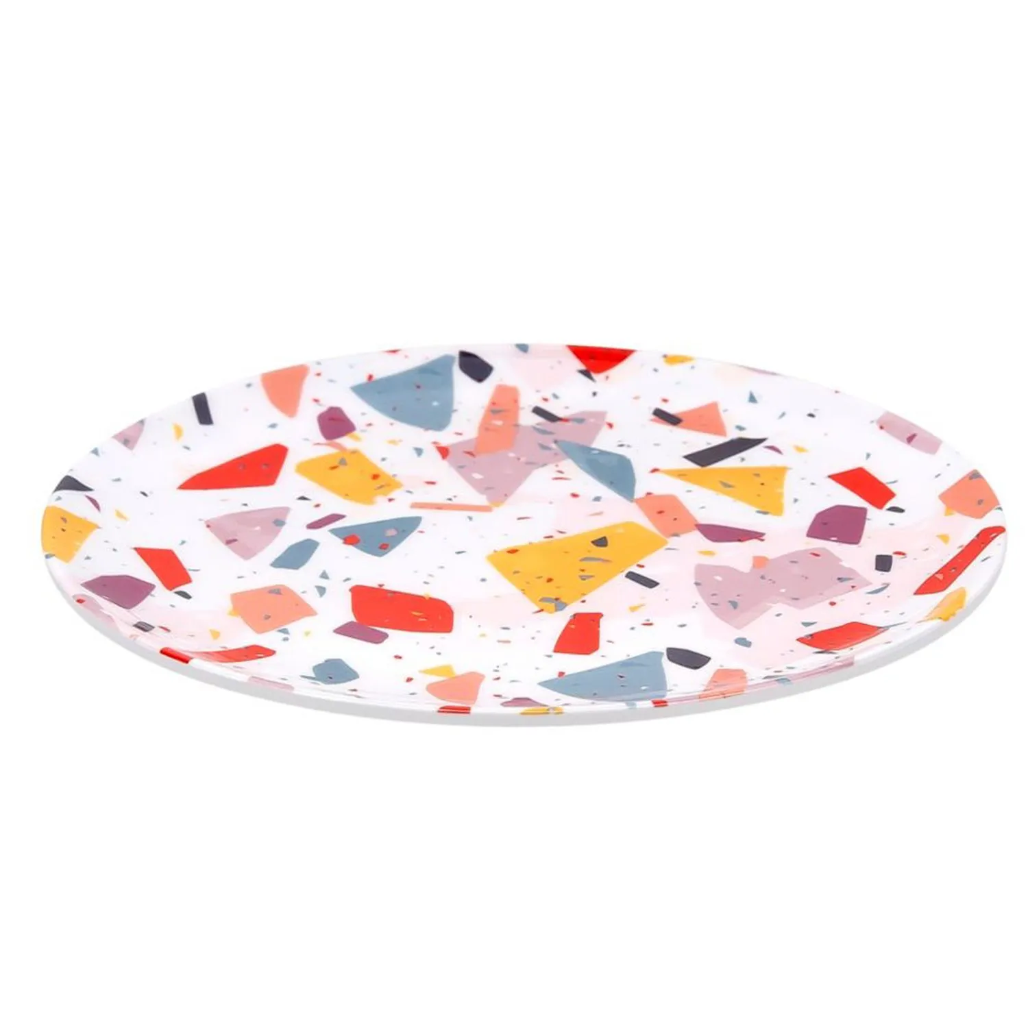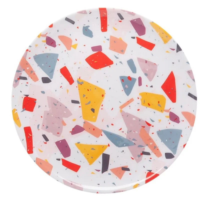 Dale un toque de color y estilo a tu mesa con el Plato Collage de 20 centímetros. Su diseño único con un patrón multicolor de estilo terrazo le dará un toque moderno a tu cocina. Hecho de melamina, este plato es resistente y duradero, perfecto para el uso diario. ¡No te pierdas la oportunidad de tener este plato que combina diseño y funcionalidad!