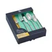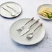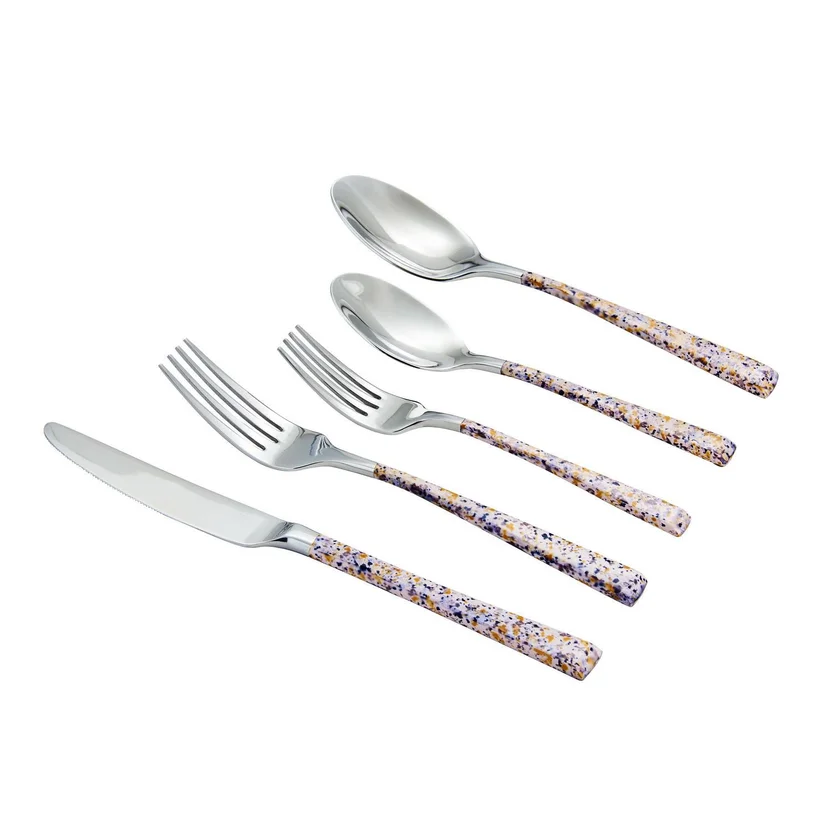 Son muy cómodos de sujetar, gracias a su diseño ergonómico. Los tenedores son de cuatro dientes, que trinchan al instante todo tipo de carnes, vegetales o alimentos sólidos. También cuenta con unos prácticos cuchillos que te permiten hacer cortes limpios en los alimentos servidos. El set incluye 4 cuchillos, 4 tenedores, 4 cucharas grandes, 4 cucharas de té y 4 tenedores de torta.