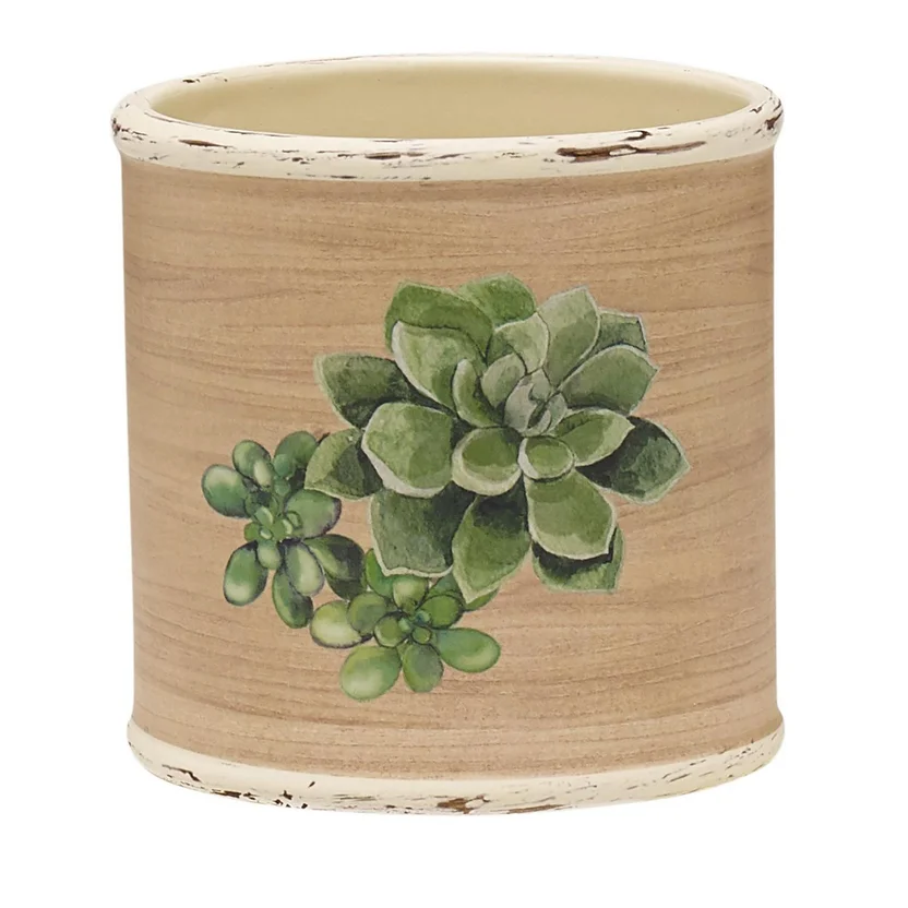 Dale un toque vintage a tu hogar con esta hermosa maceta de cerámica de 9 cm de diámetro. Su diseño cilíndrico con estampado de suculenta le dará un toque único a tus plantas. La maceta es de color café y está hecha de cerámica, lo que la hace resistente y duradera. Además, incluye 3 gomas antiderrapantes para que puedas colocarla en cualquier superficie sin que se mueva.