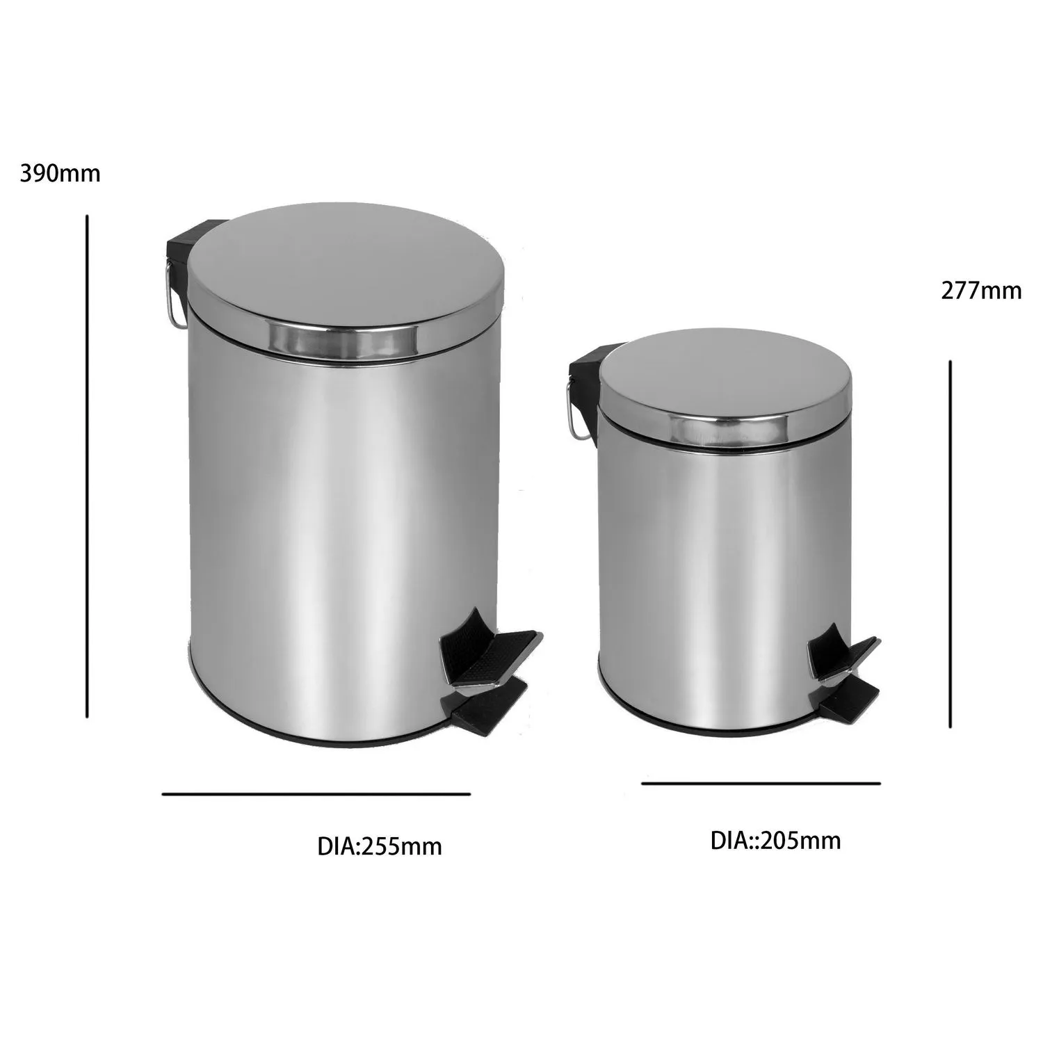Set de 2 botes de basura de 5 y 12 litros Acero inoxidable
