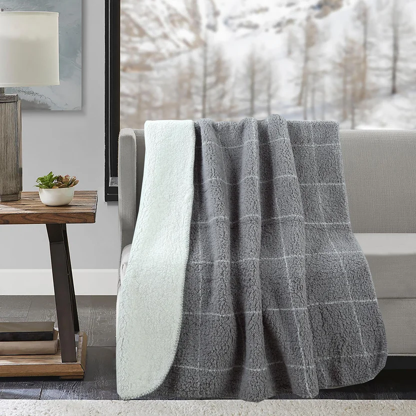 Frazada con Borrega Sherpa Roll de 125 x 150 cm Gris