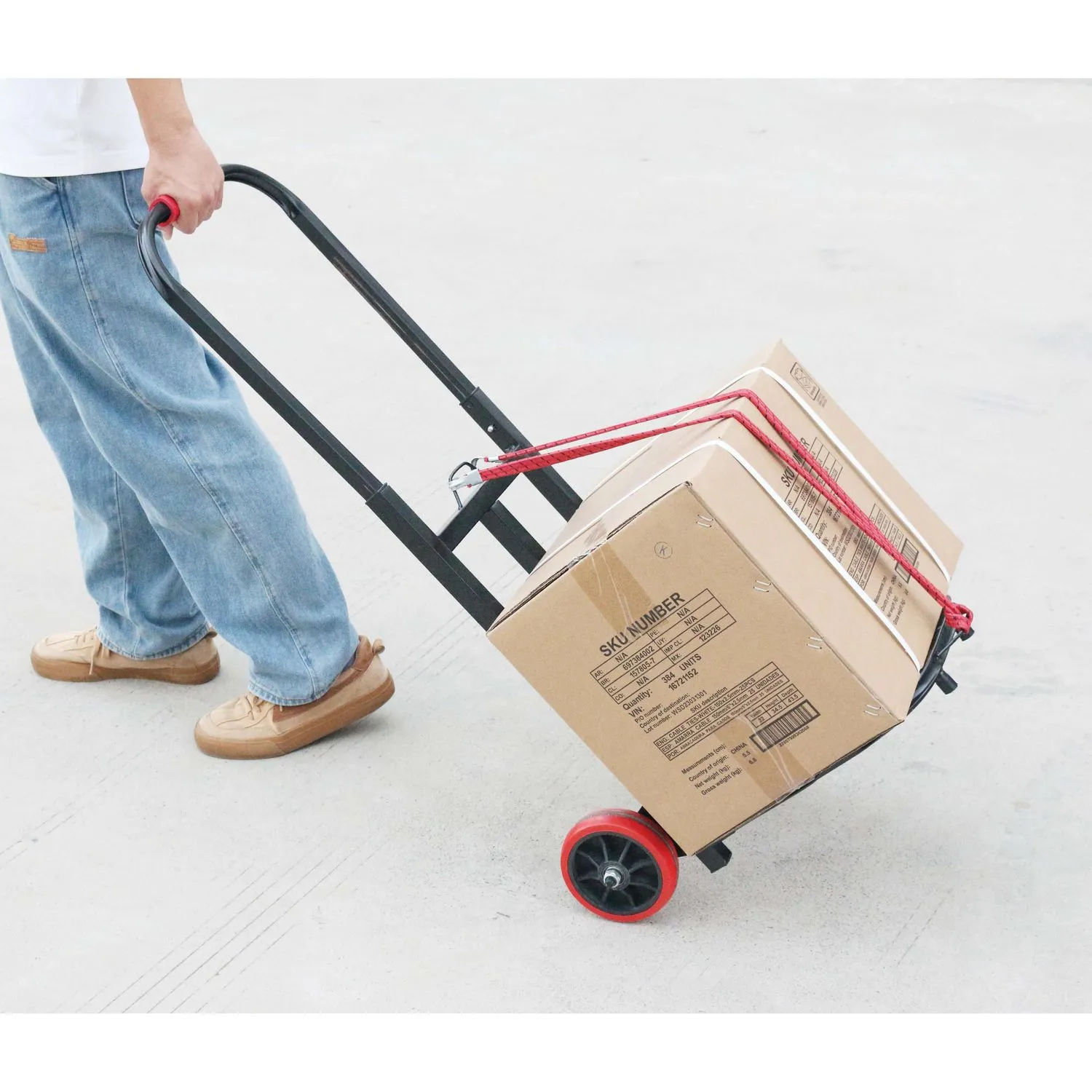 Este diablo de carga está hecho de acero resistente y cuenta con un mango ergonómico para un agarre cómodo. Además, incluye dos amarres elásticos para asegurar la carga durante el transporte. Su diseño robusto y sus materiales de alta calidad lo hacen ideal para uso en el hogar, la oficina o el taller.